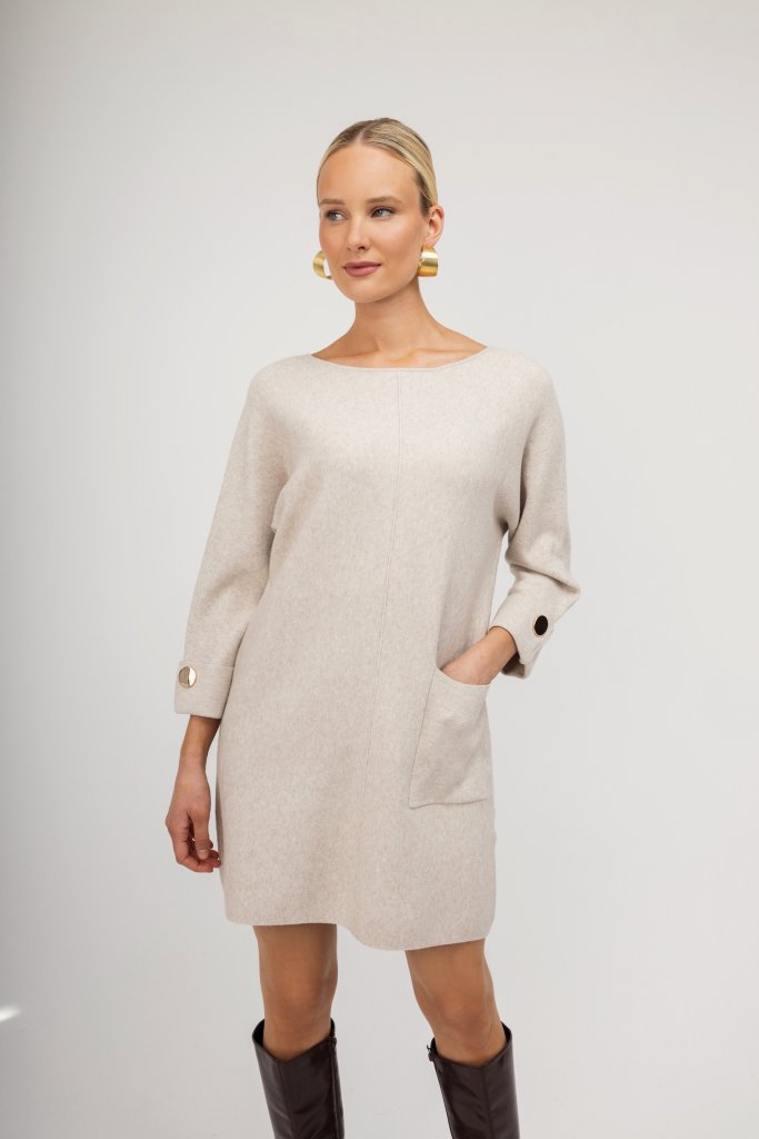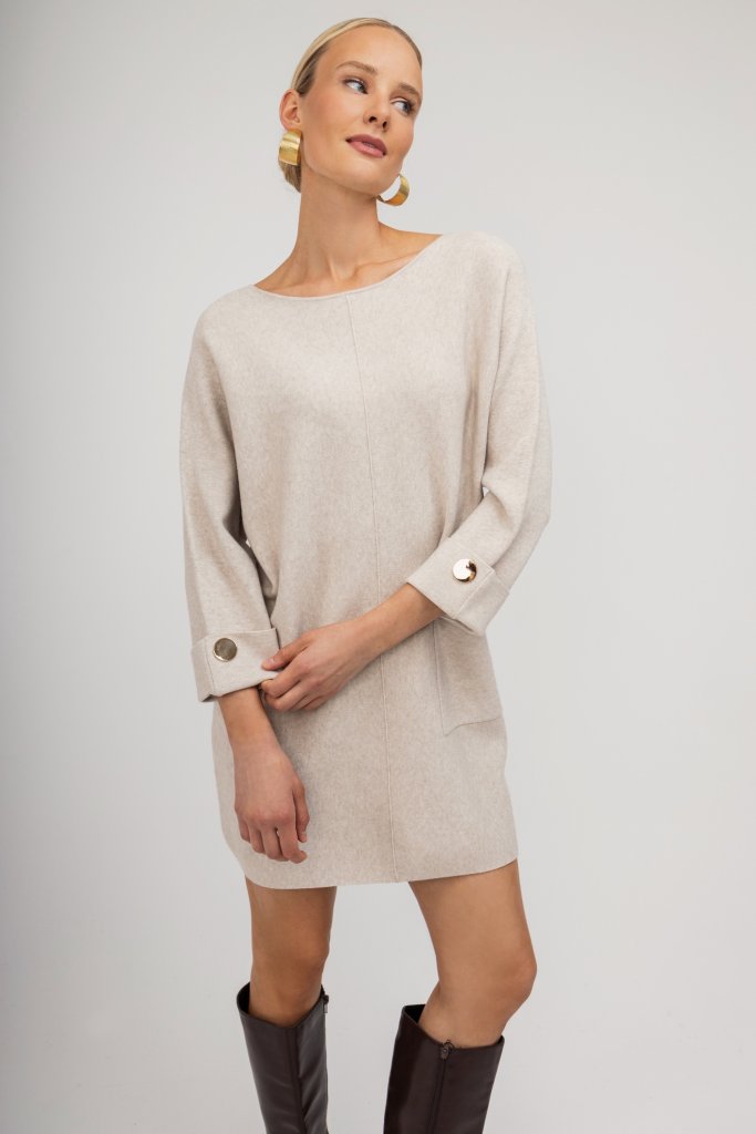 Φόρεμα mini μπεζ μονόχρωμο με χρυσές λεπτομέρειες