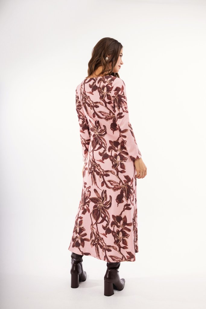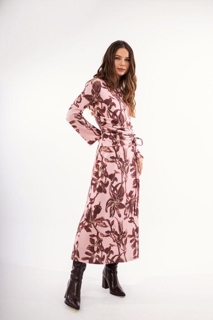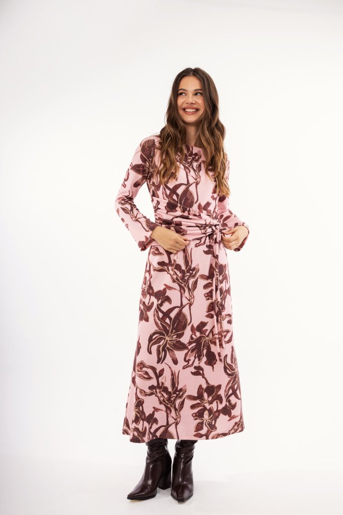 Γυναικείο ροζ φόρεμα με φλοράλ σχέδιο, με σούρα και κορδόνι. Διαθέτει άλφα γραμμή και κλειστή λαιμόκοψη. Ανανεώστε το καθημερινό σας outfit με αυτό το υπέροχο σχέδιο και συνδυάστε τα κατάλληλα αξεσουάρ για να το μεταμορφώσετε σε πρωινή ή βραδινή έξοδο.