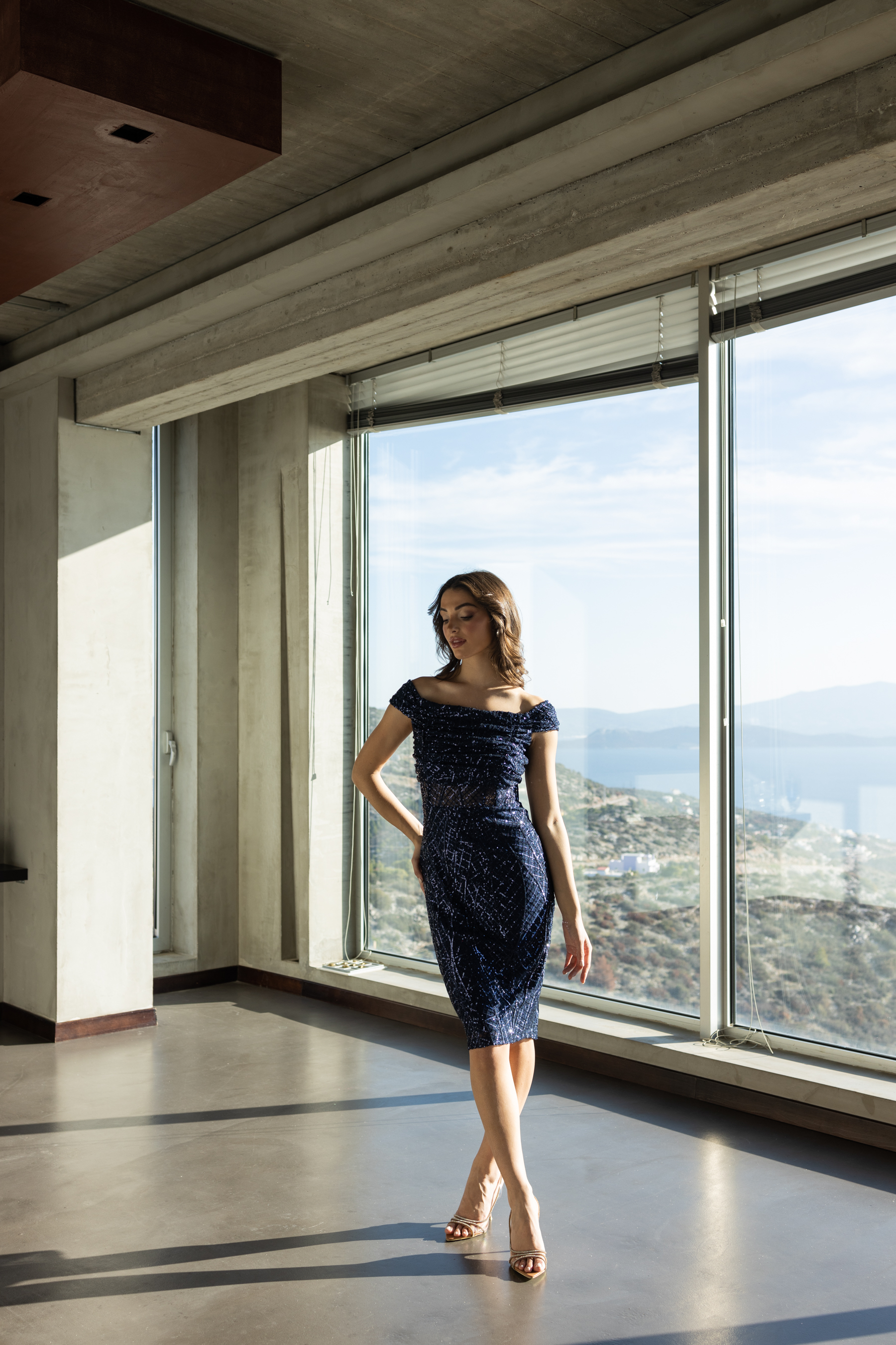 Φόρεμα εφαρμοστό με σχέδια από παγιέτα μπλε