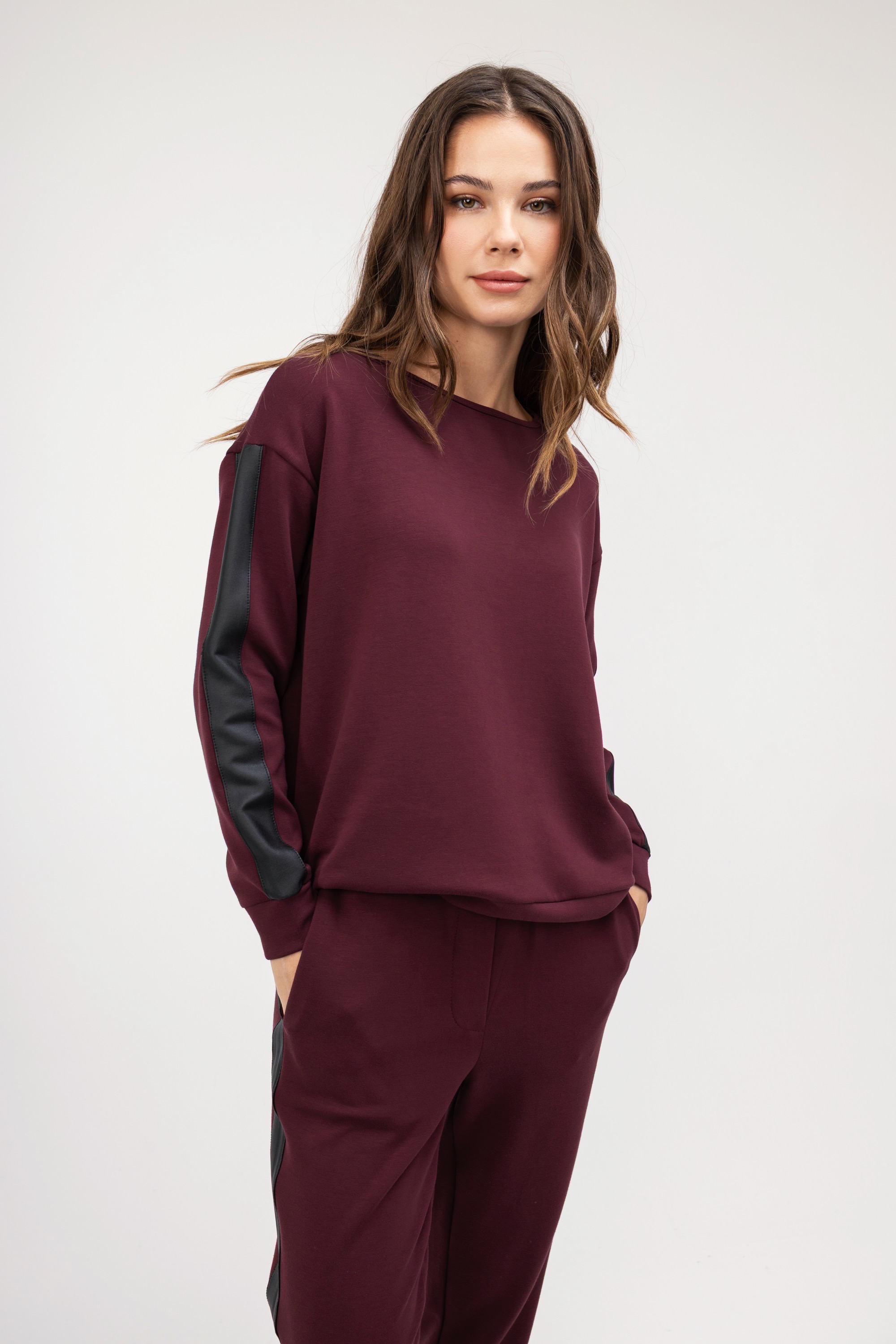 Φούτερ-Μπλούζα μπορντώ με μαύρη λεπτομέρεια
