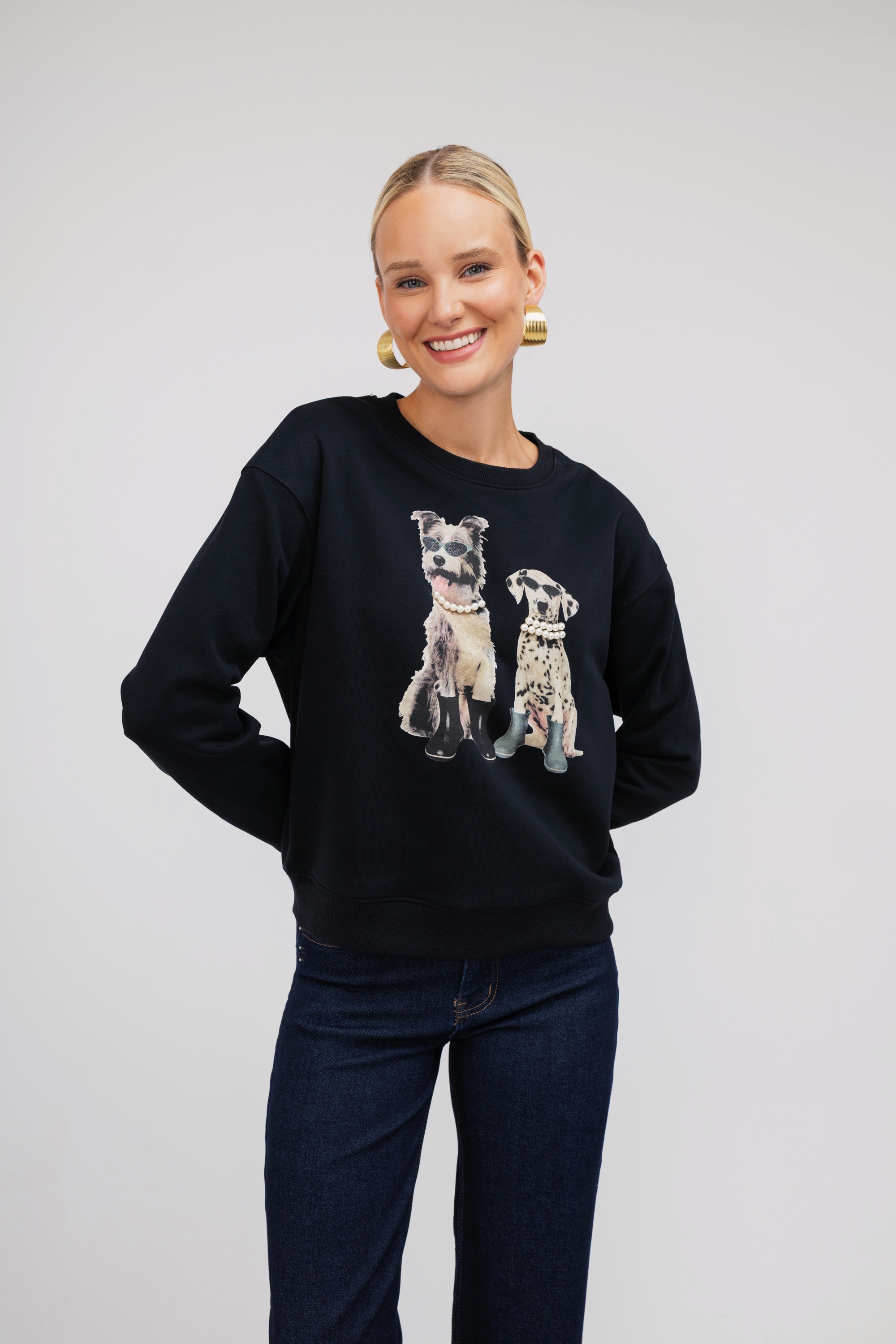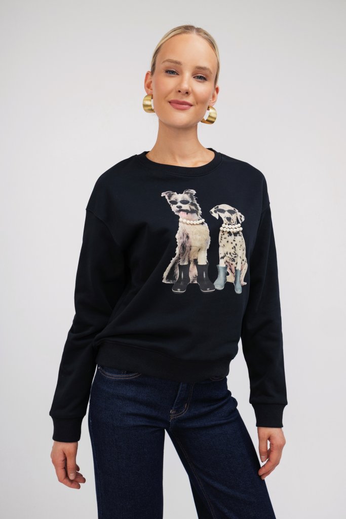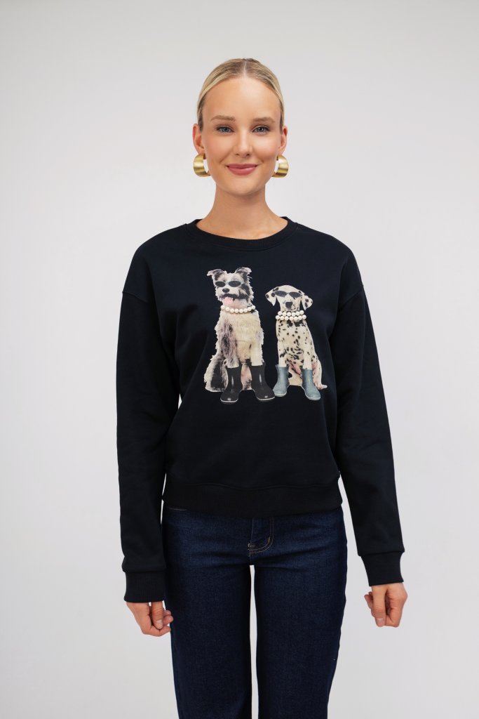 Γυναικεία μπλούζα, φούτερ διακοσμημένη με σχέδιο από σκυλάκια και πέρλες σε μαύρο χρώμα . Διαθέτει στρογγυλή λαιμόκοψη. Μια επιλογή που θα αναβαθμίσει τα καθημερινά σας look και θα χαρίσει ένα ξεχωριστό αέρα στις εμφανίσεις σας.