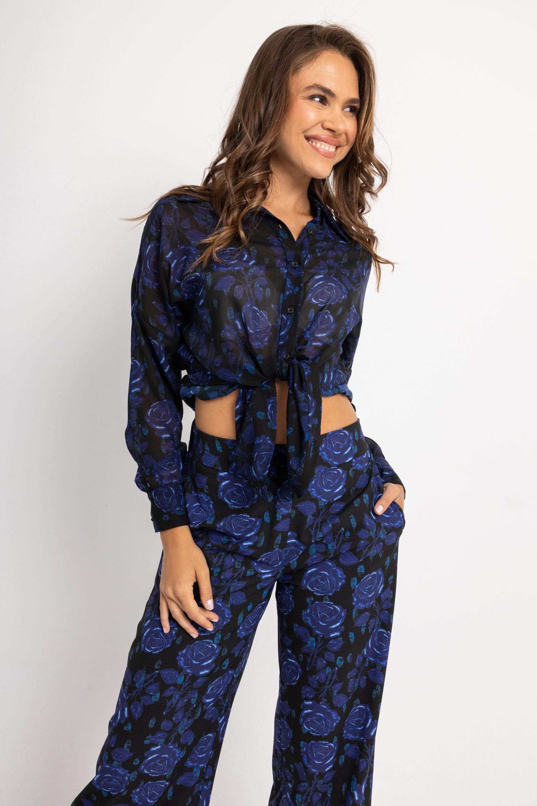 Μπλούζα-Πουκαμίσα μπλε με τριαντάφυλλα