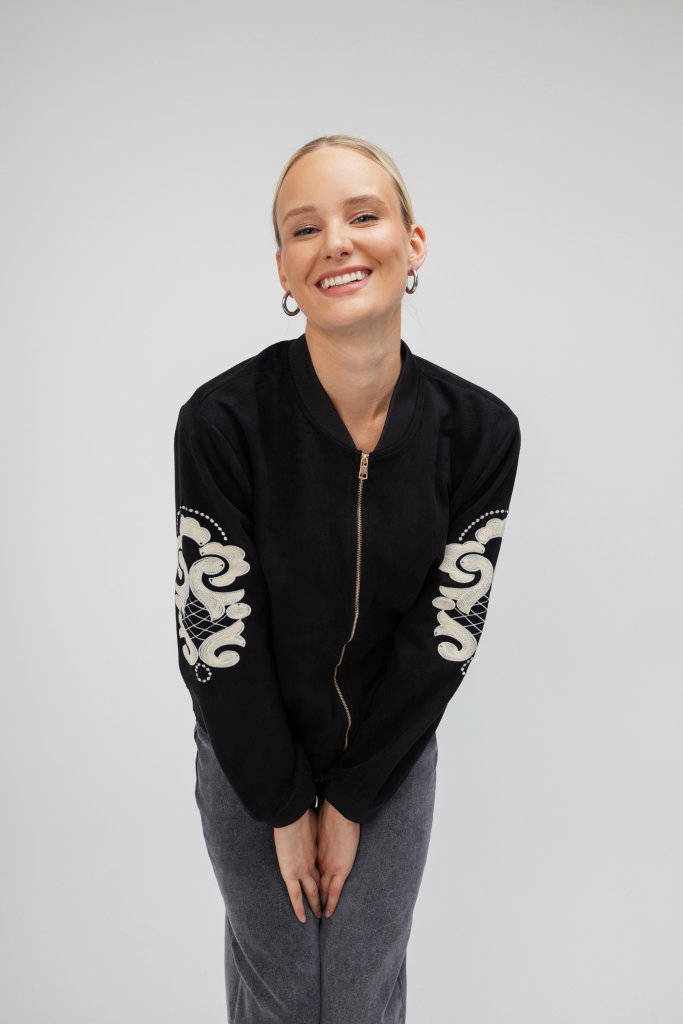 Γυναικείο Μπουφάν μαύρο κοντό με λαχούρια.