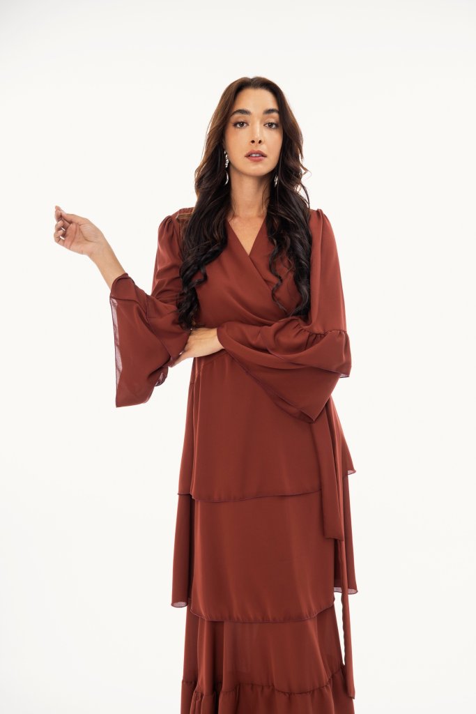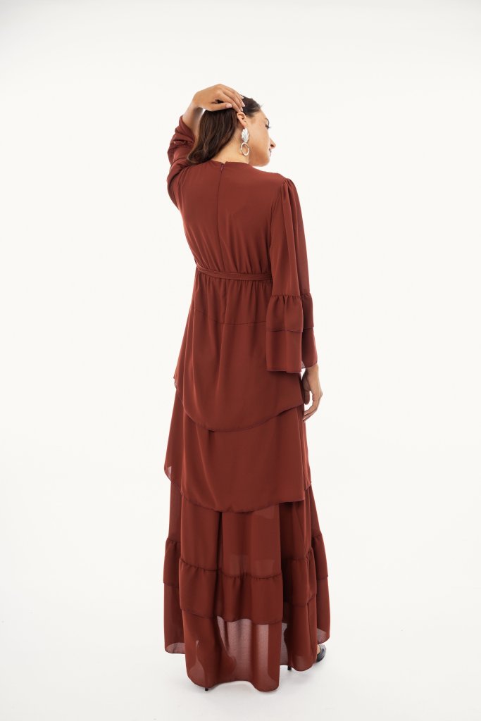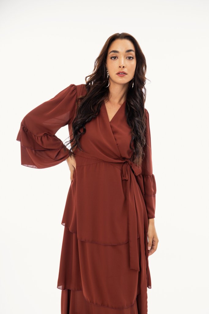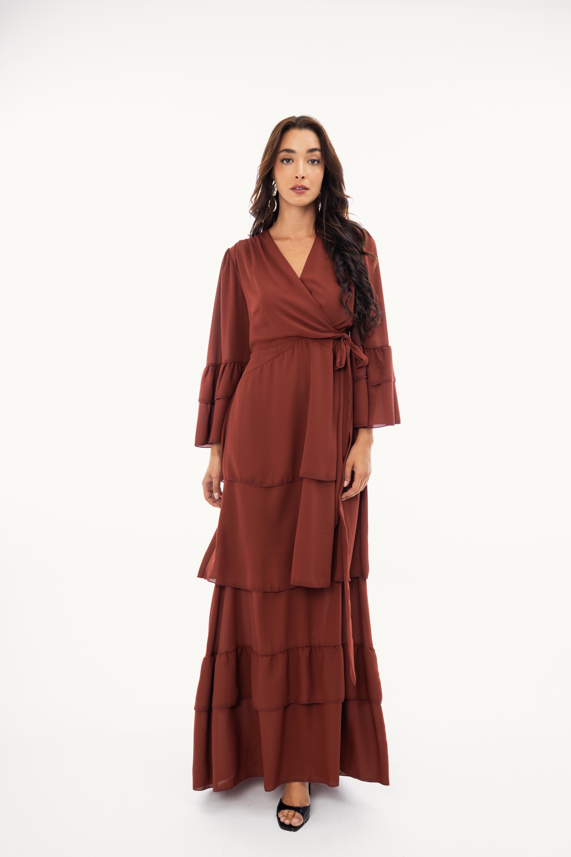 Φόρεμα maxi κρουαζέ με δέσιμο στο πλάι μονόχρωμο εκάι