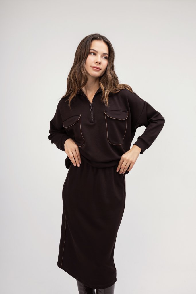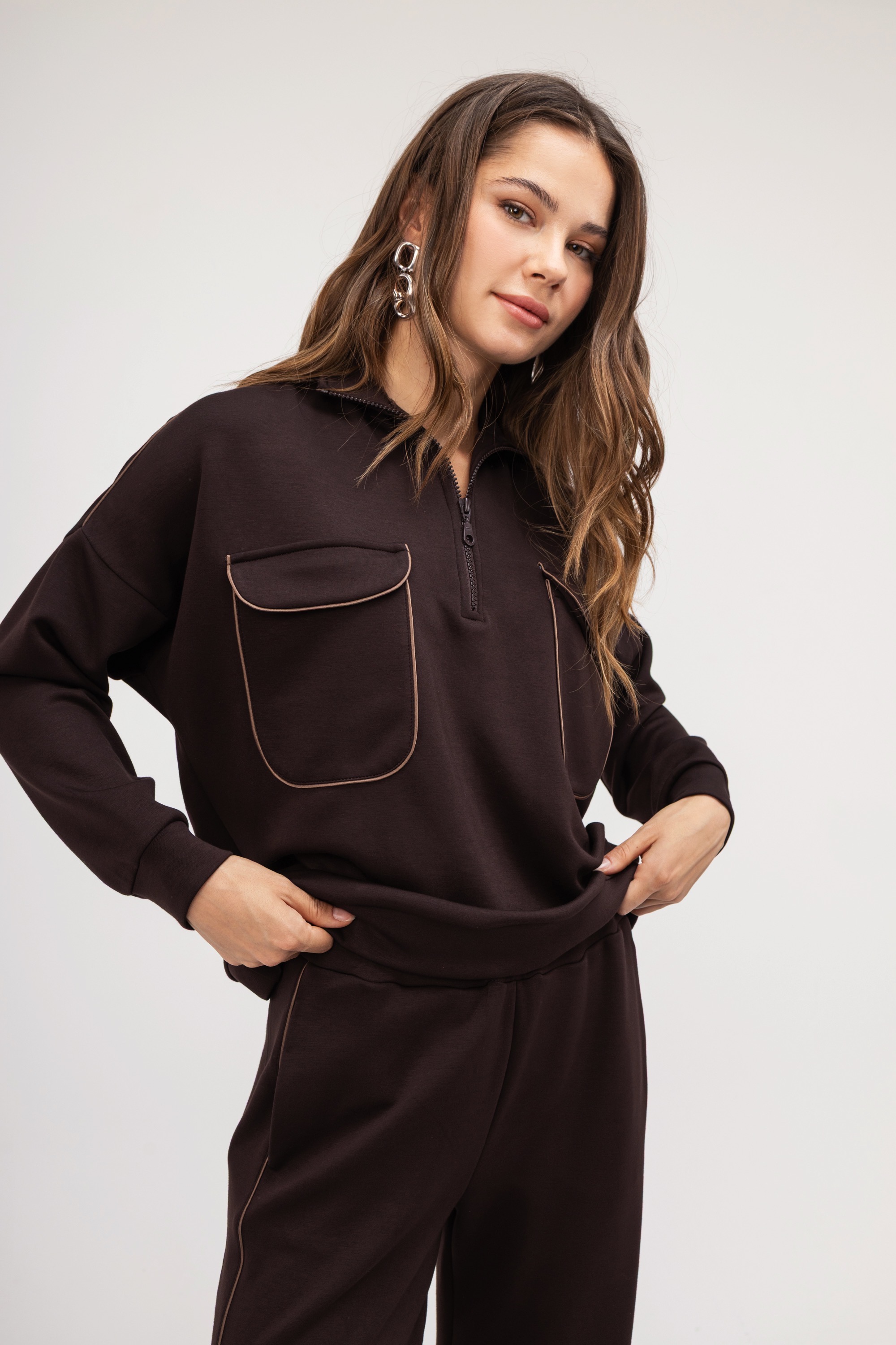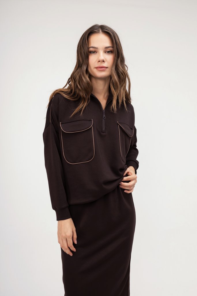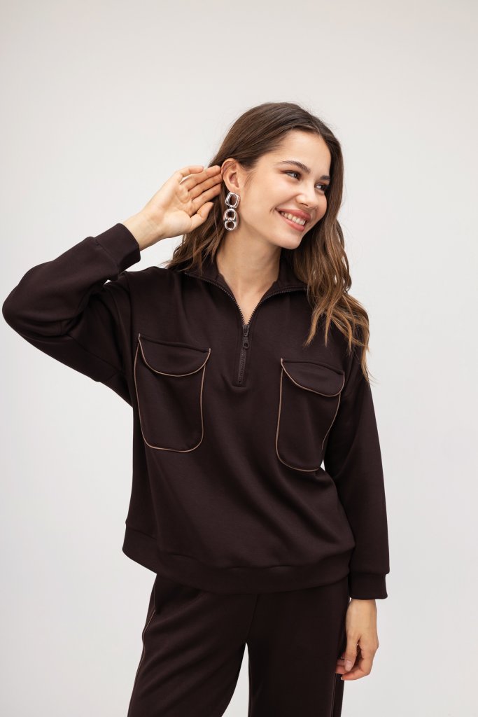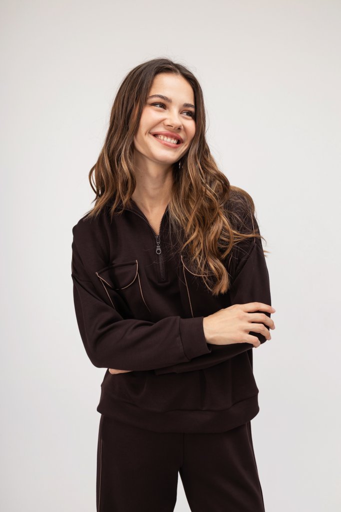 Φούτερ-Μπλούζα καφέ με φερμουάρ