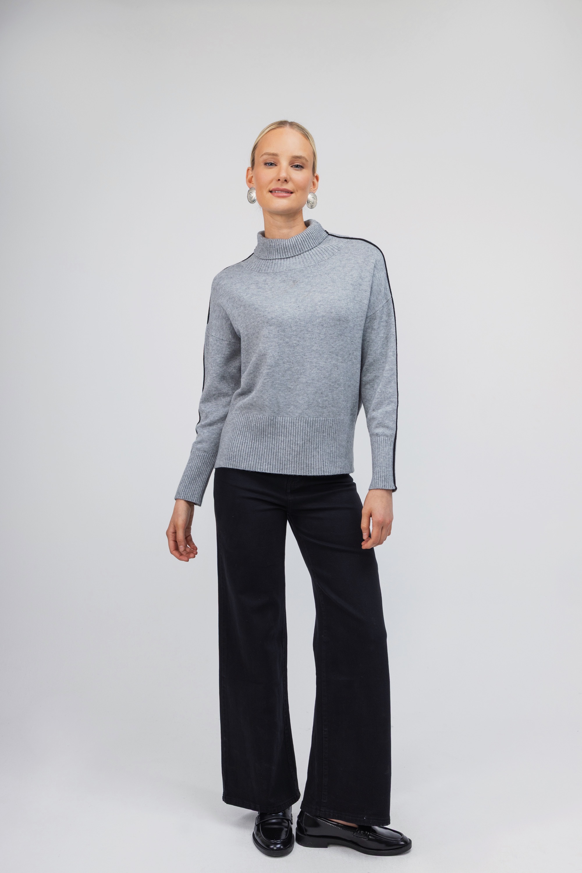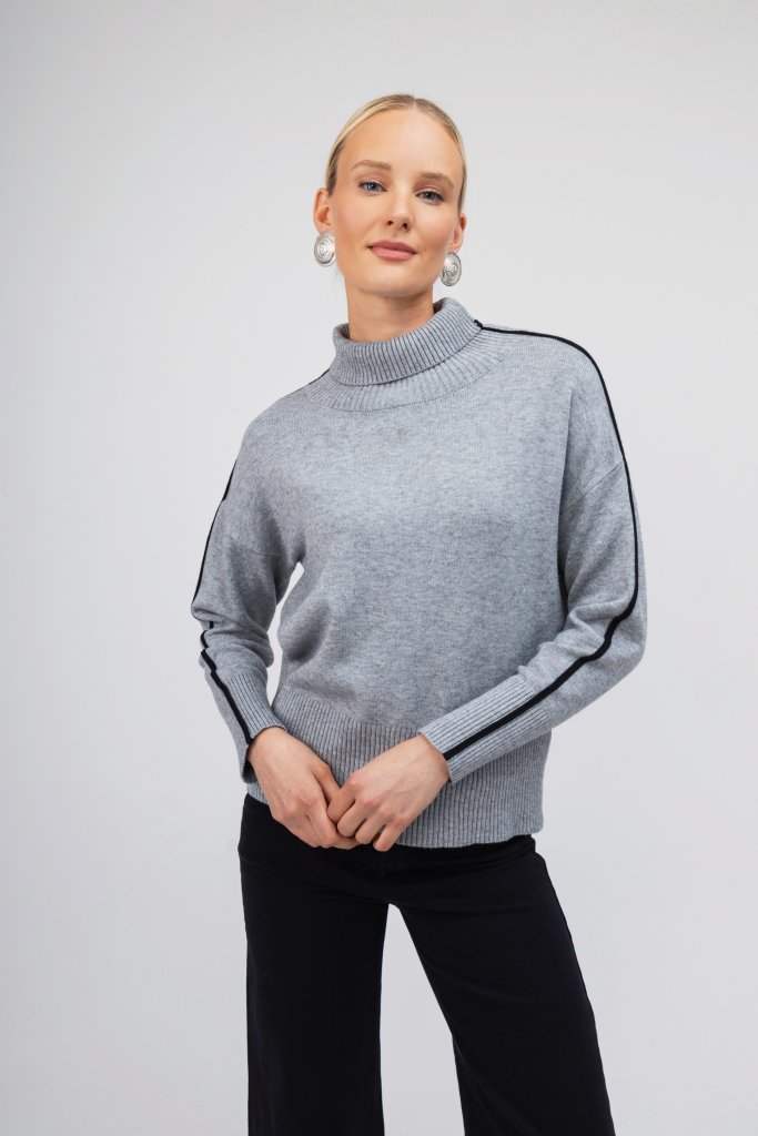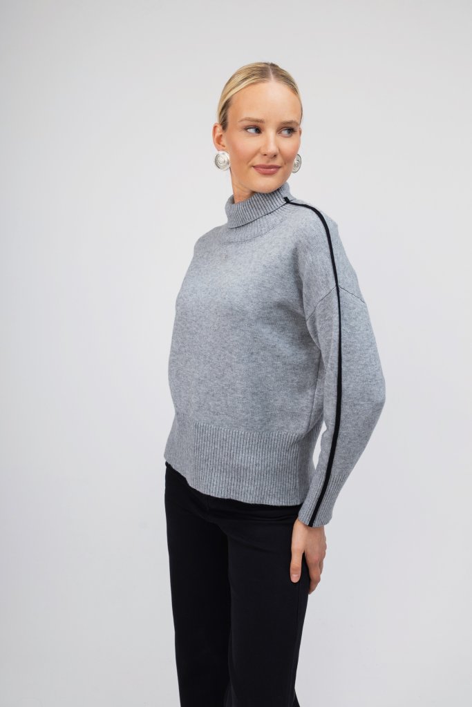 Πουλόβερ γκρι ζιβάγκο με μαύρη λεπτομέρεια