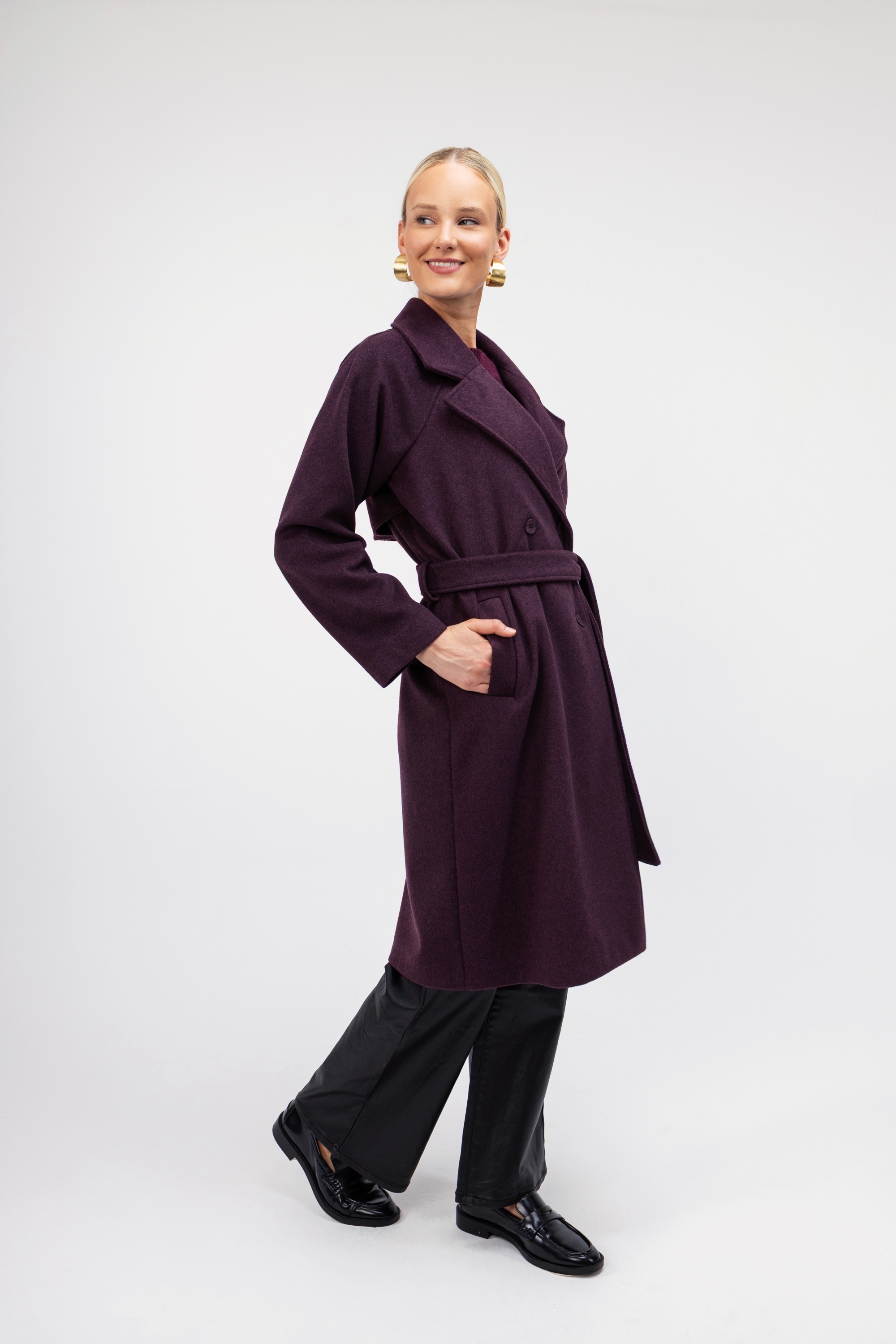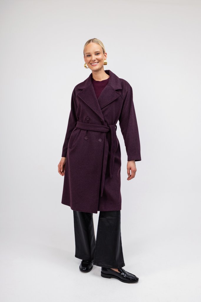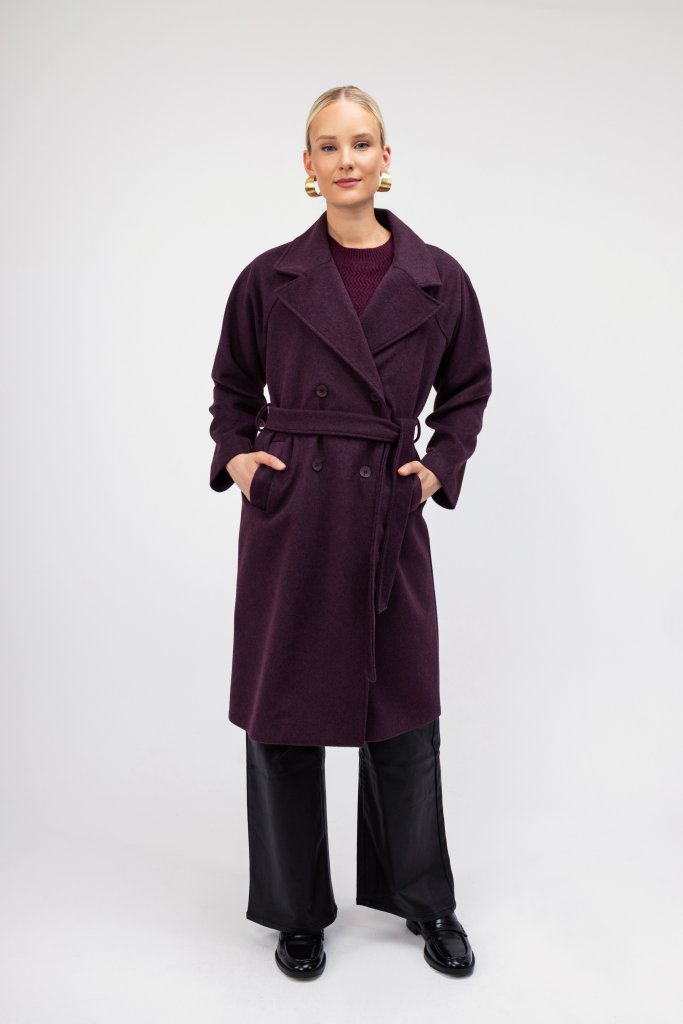 Κλασικό γυναικείο παλτό σε ιδιαίτερο μπορντώ χρώμα με γιακά. Κλείσιμο με ζώνη και κουμπιά για περισσότερη σταθερότητα. Διαθέτει τσέπες στα πλαϊνά μέρη. Μια χειμερινή επιλογή που θα σας κρατήσει ζεστές και κομψές σε κάθε σας εμφάνιση.