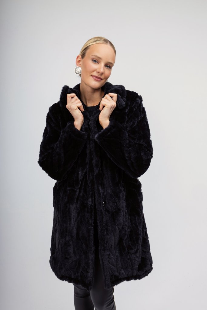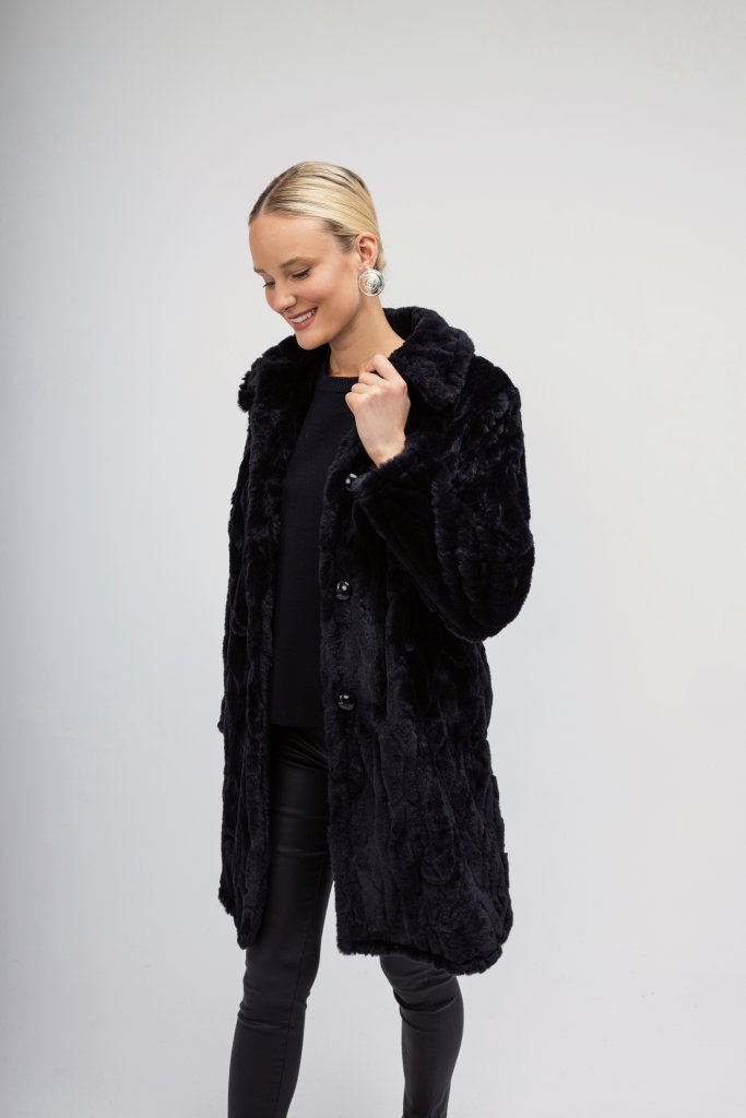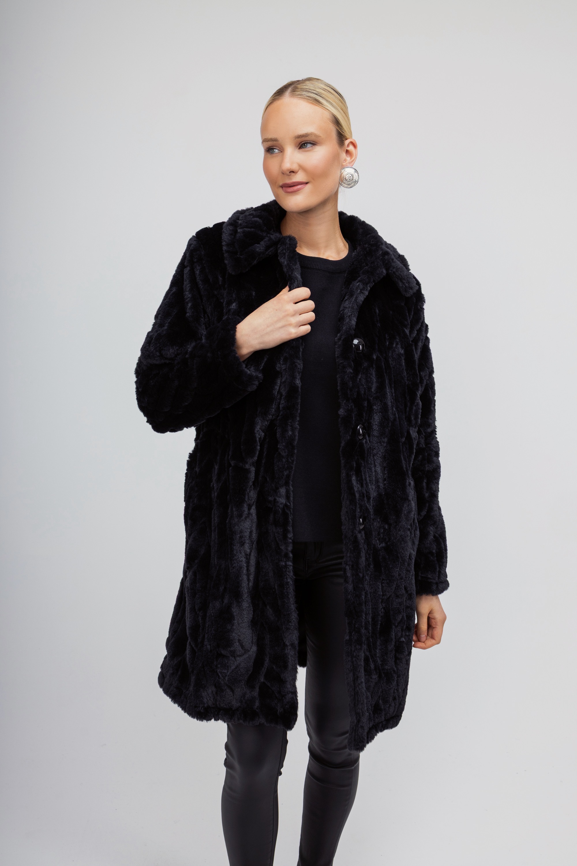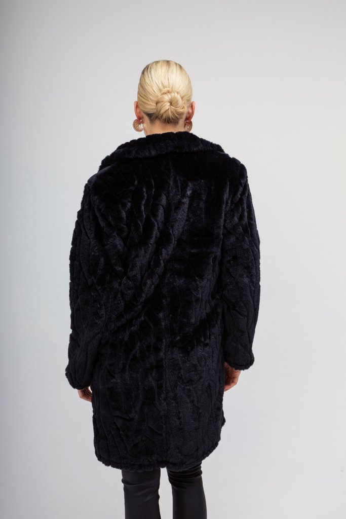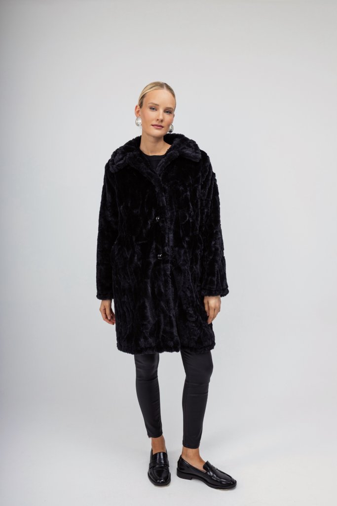 Γυναικείο πανωφόρι σχεδιασμένο από οικολογική γούνα υψηλής ποιότητας και γιακά. Κλείσιμο με κουμπιά. Ένα ζεστό και μοντέρνο σχέδιο που θα ανανεώσει τη χειμερινή σας συλλογή και θα σας χαρίσει κομψό στιλ.