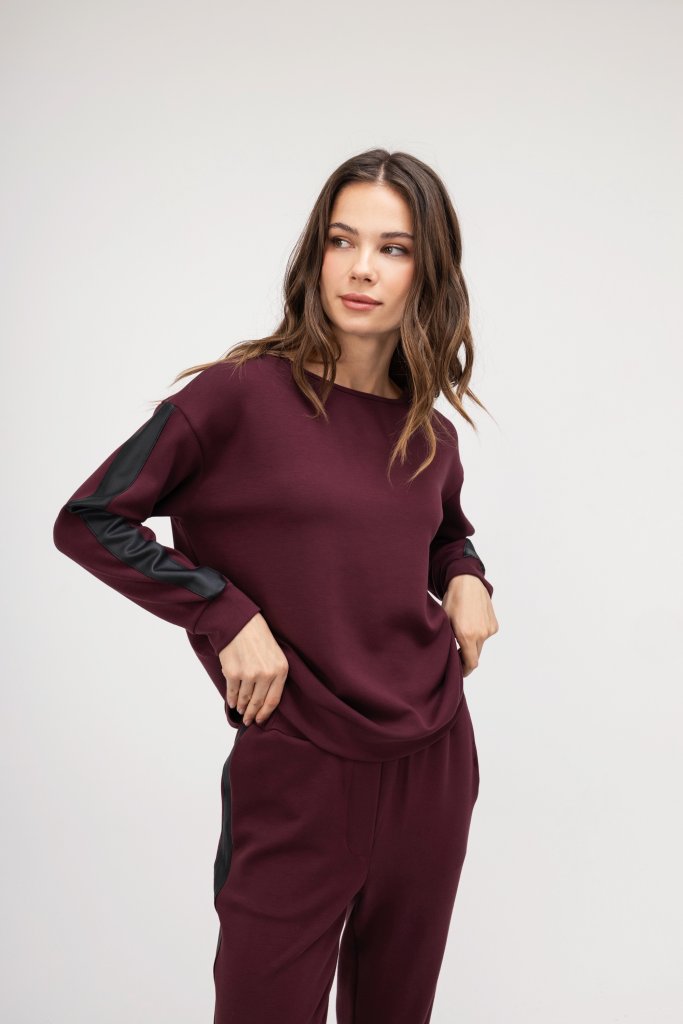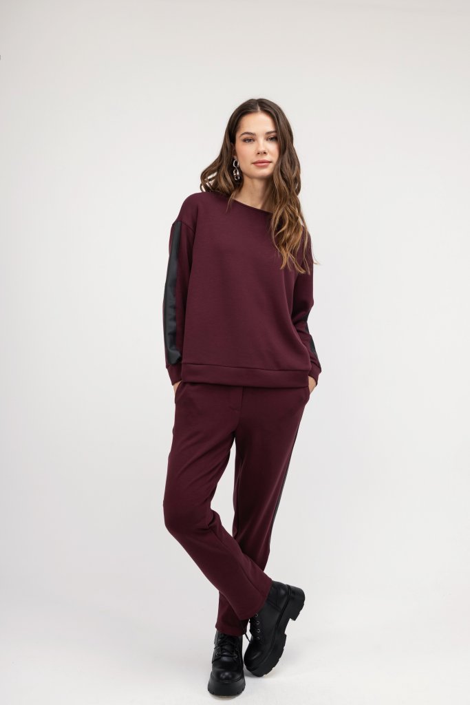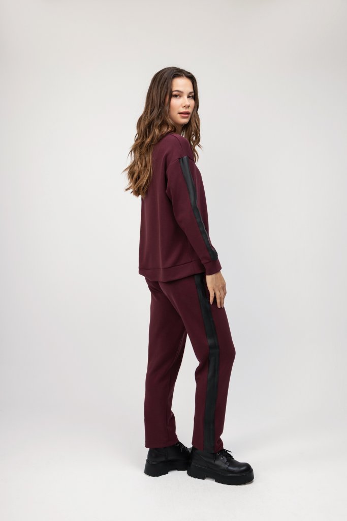 Παντελόνι μπορντώ άνετο με μαύρη λεπτομέρεια