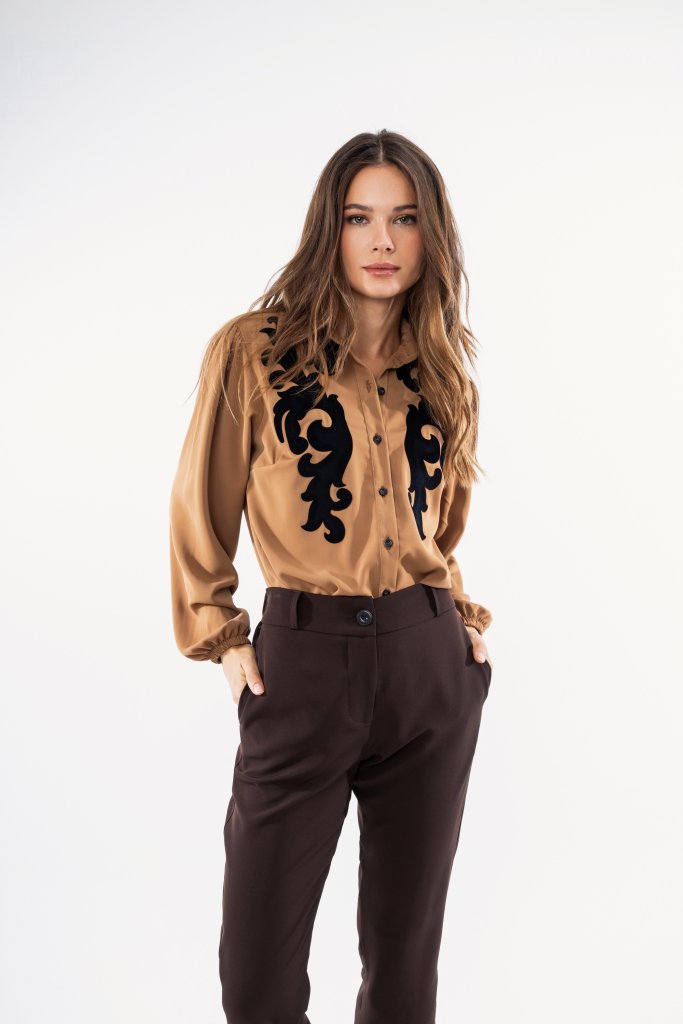Γυναικείο παντελόνι σε σκούρο καφέ χρώμα, απλό μονόχρωμο σχεδιασμό για να ταιριάζει με όλα σας τα ρούχα. Κλείσιμο με κουμπί και φερμουάρ. Διαθέτει τσέπες στα πλαινά μέρη και άνοιγμα στο πίσω μέρος. Μια basic επιλογή που δεν πρέπει να λείπει από καμία γκαρνταρόμπα.