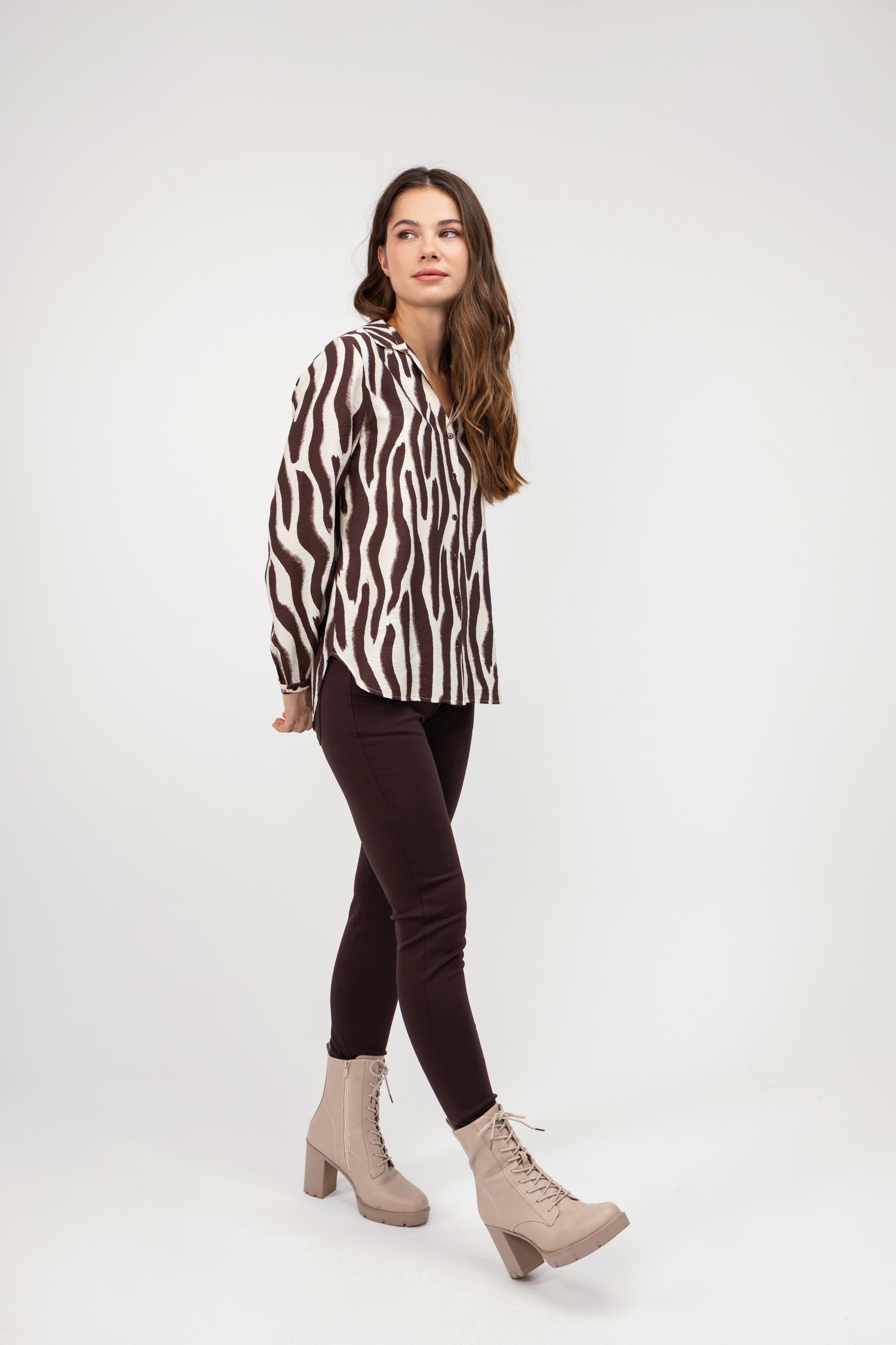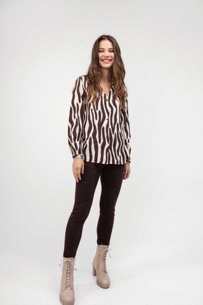 Παντελόνι υφασμάτινο καφέ σε κλασική γραμμή. Κλείσιμο με φερμουάρ και κουμπί. Ένα σχέδιο με διαχρονικό χαρακτήρα που δεν πρέπει να λείπει από τη συλλογή σας.