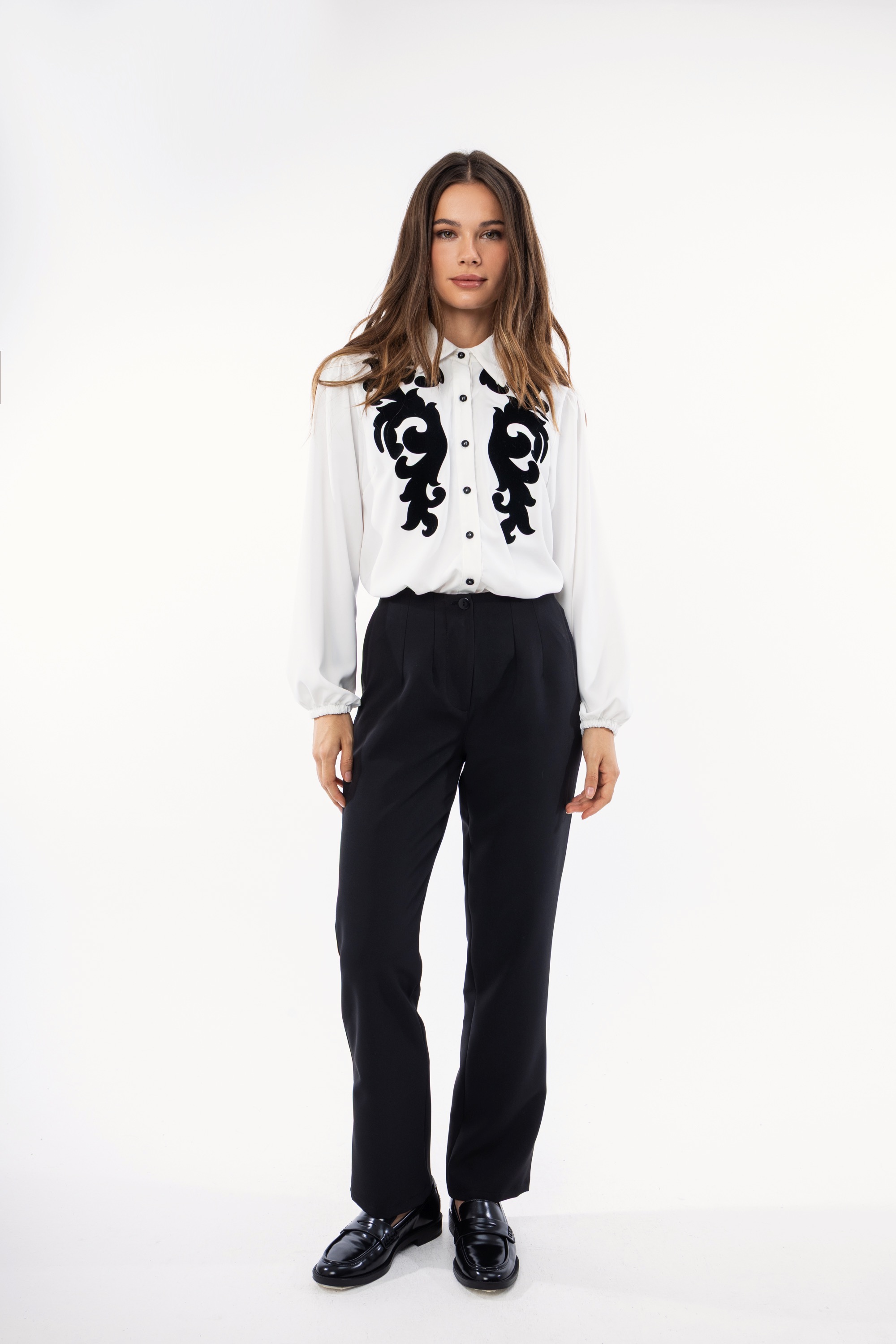 Μαύρο γυναικείο παντελόνι σε ίσια γραμμή με κοψίματα και κουμπί στο πάνω μέρος. Μια μονόχρωμη επιλογή που μπορεί να συνδυαστεί με πολλά σύνολα και να αναβαθμίσει το καθημερινό σας look.