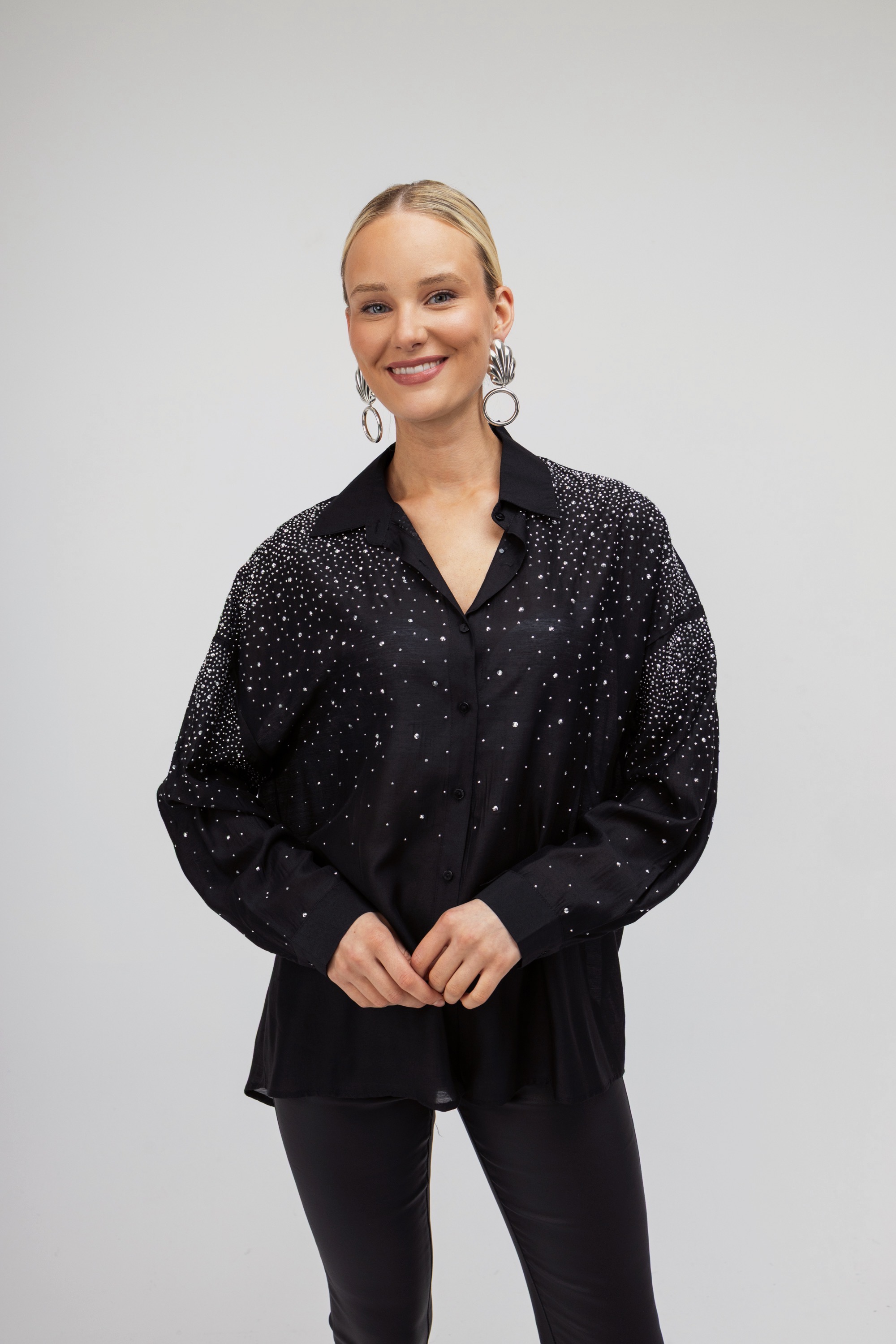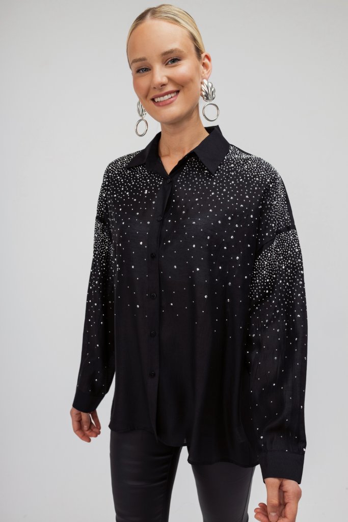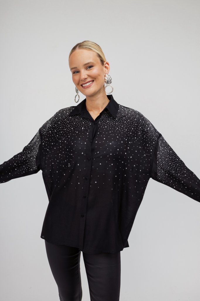 Πουκάμισο μαύρο διακοσμημένο με strass