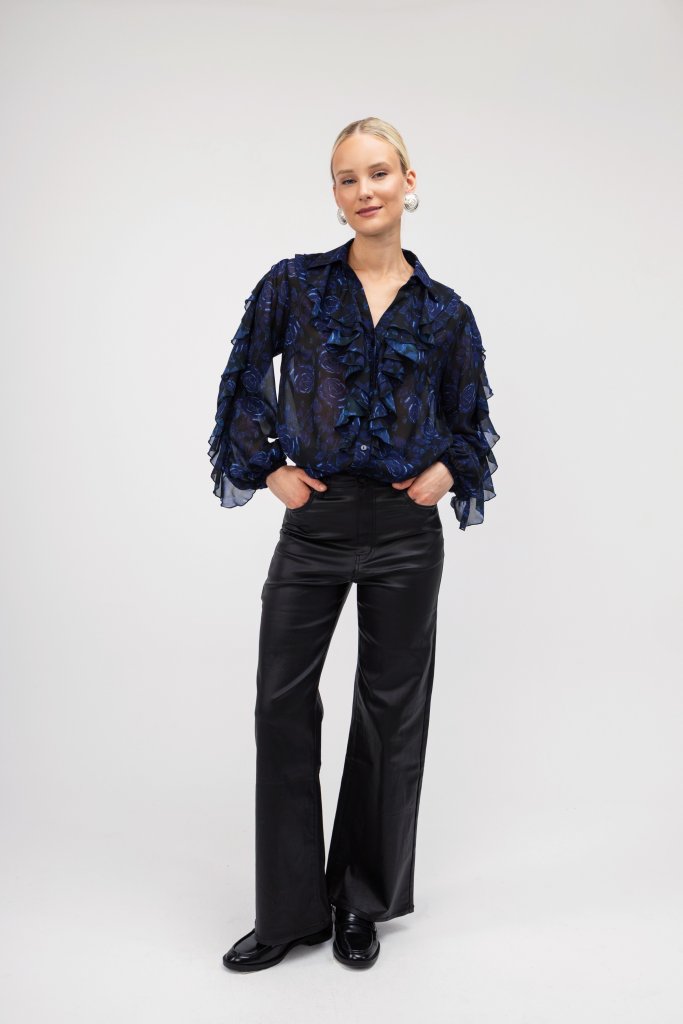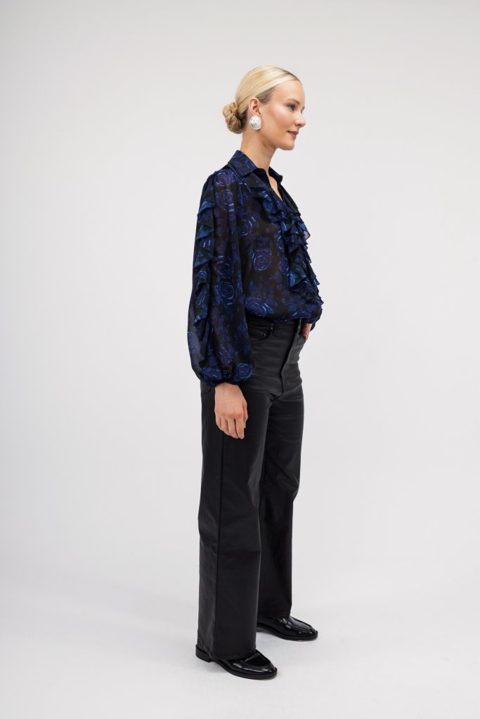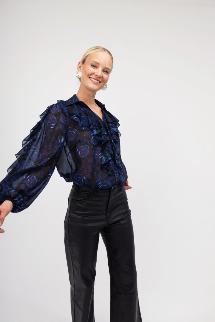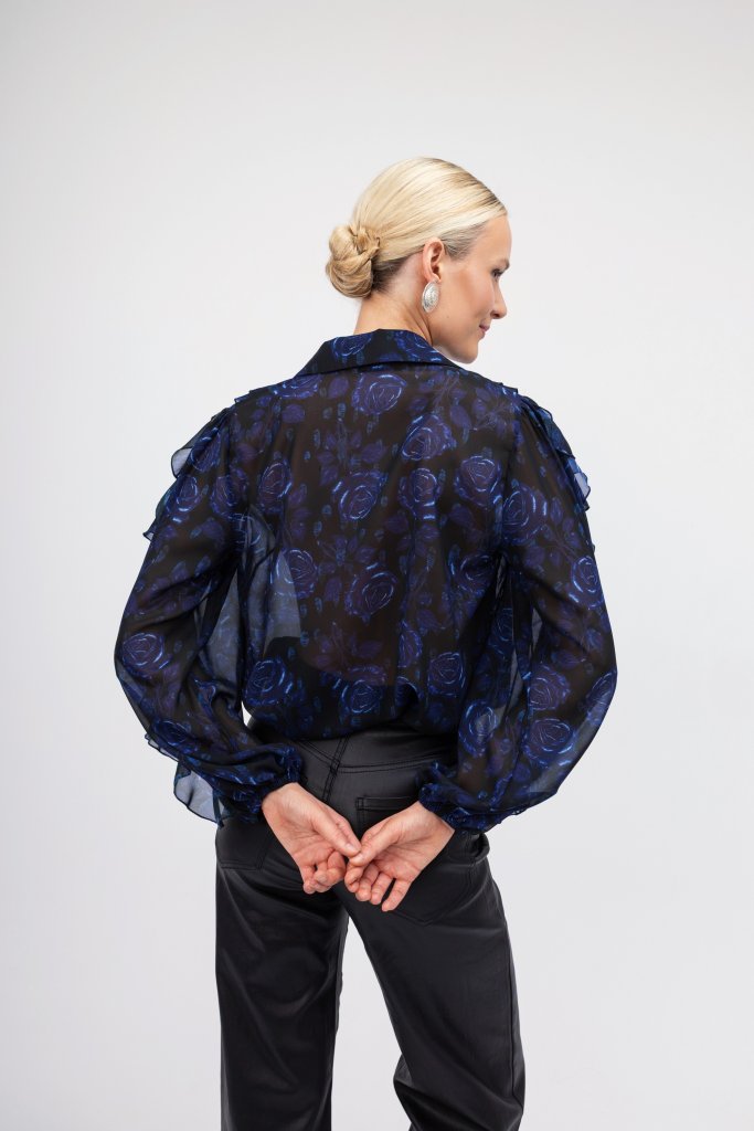 Πουκάμισο με μπλε τριαντάφυλλα και βολάν