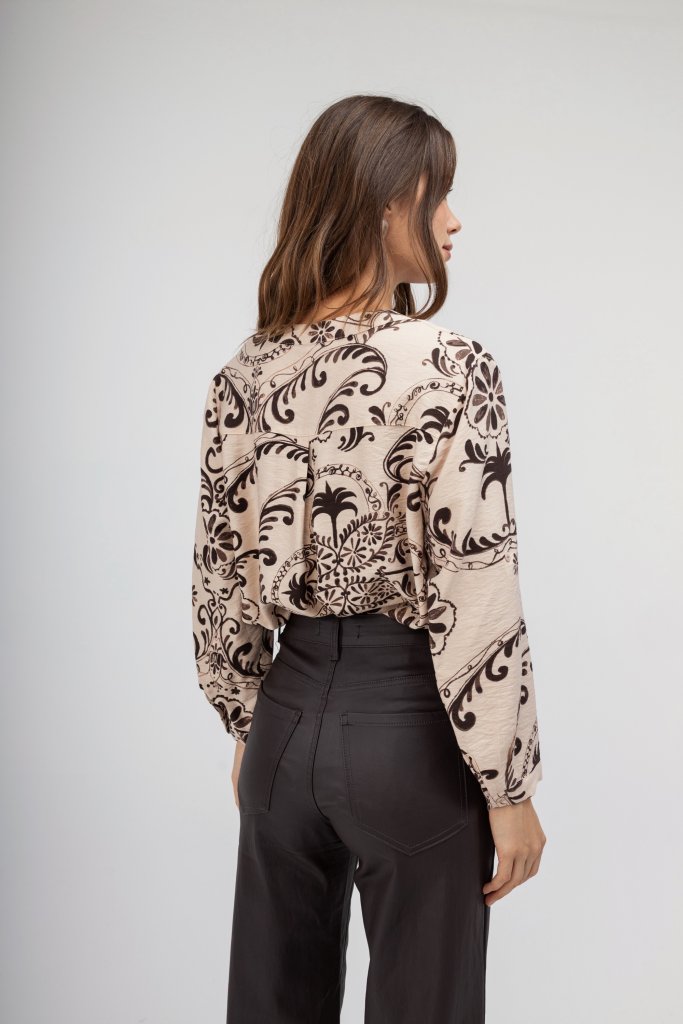 Πουκάμισο μπεζ με σχέδια από λαχούρια και λουλούδια