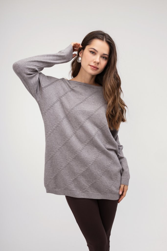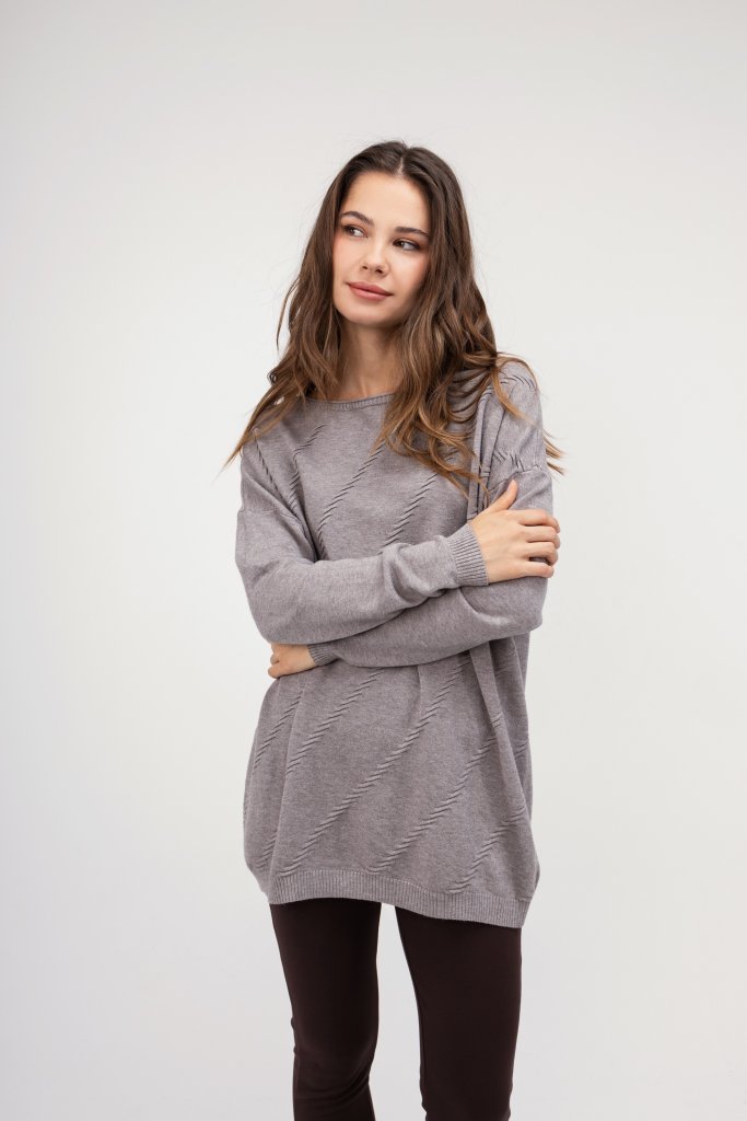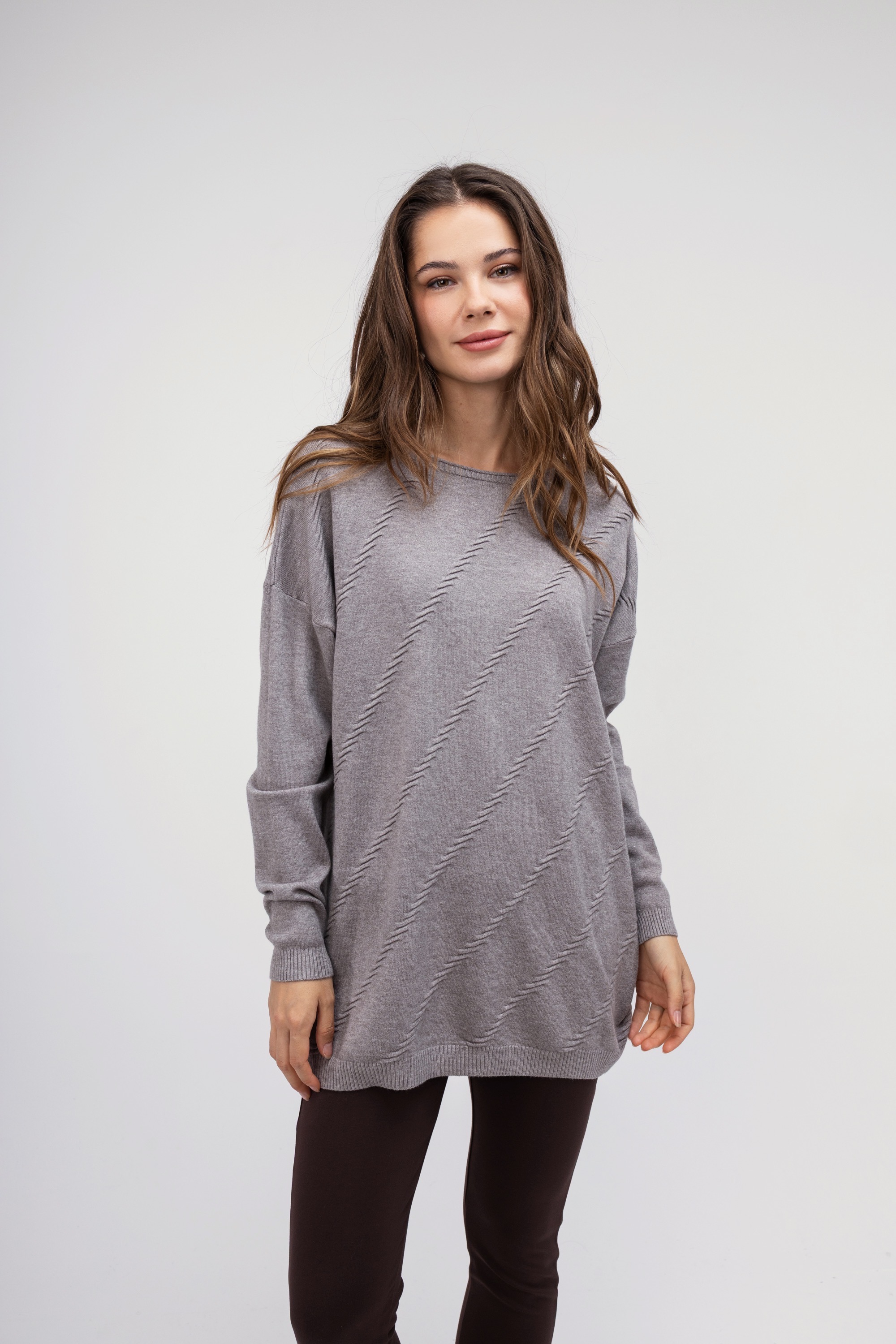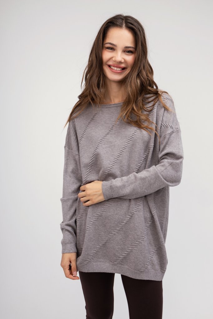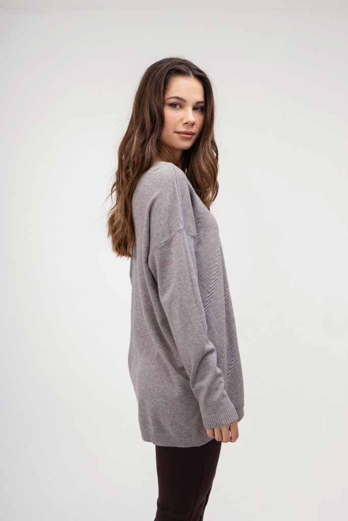 Γυναικείο Πουλόβερ γκρι με διακριτικό σχέδιο στο μήκος του. Διαθέτει άνετη εφαρμογή και έχει σχεδιαστεί από απαλό υλικό άριστης ποιότητας. Μια μονόχρωμη επιλογή που θα γίνει το αγαπημένο σας κομμάτι για τις καθημερινές σας εμφανίσεις.