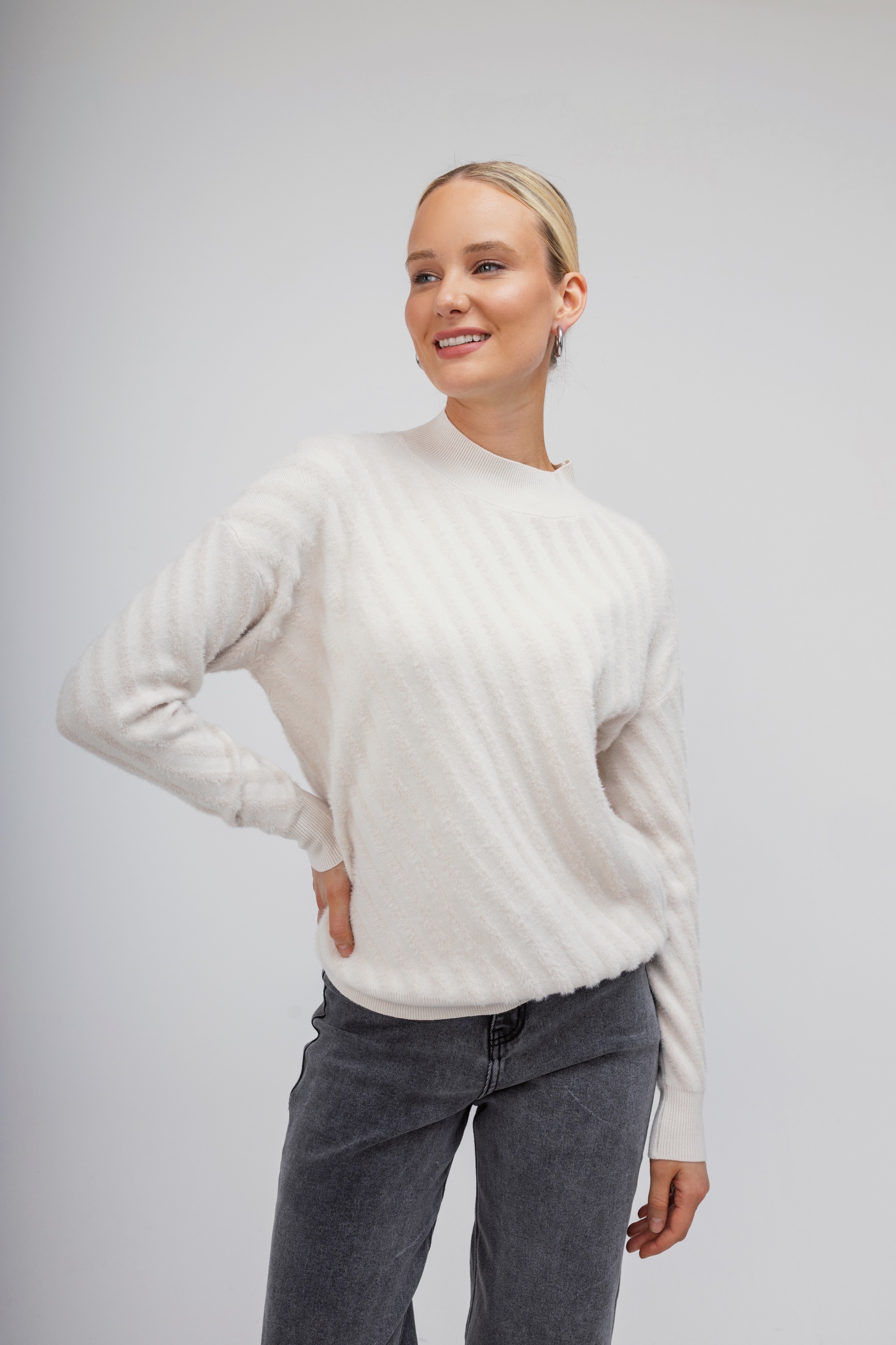 Πουλόβερ- Μπλούζα εκρού με βελουτέ υφή και ιδίατερο ανάγλυφο σχέδιο.