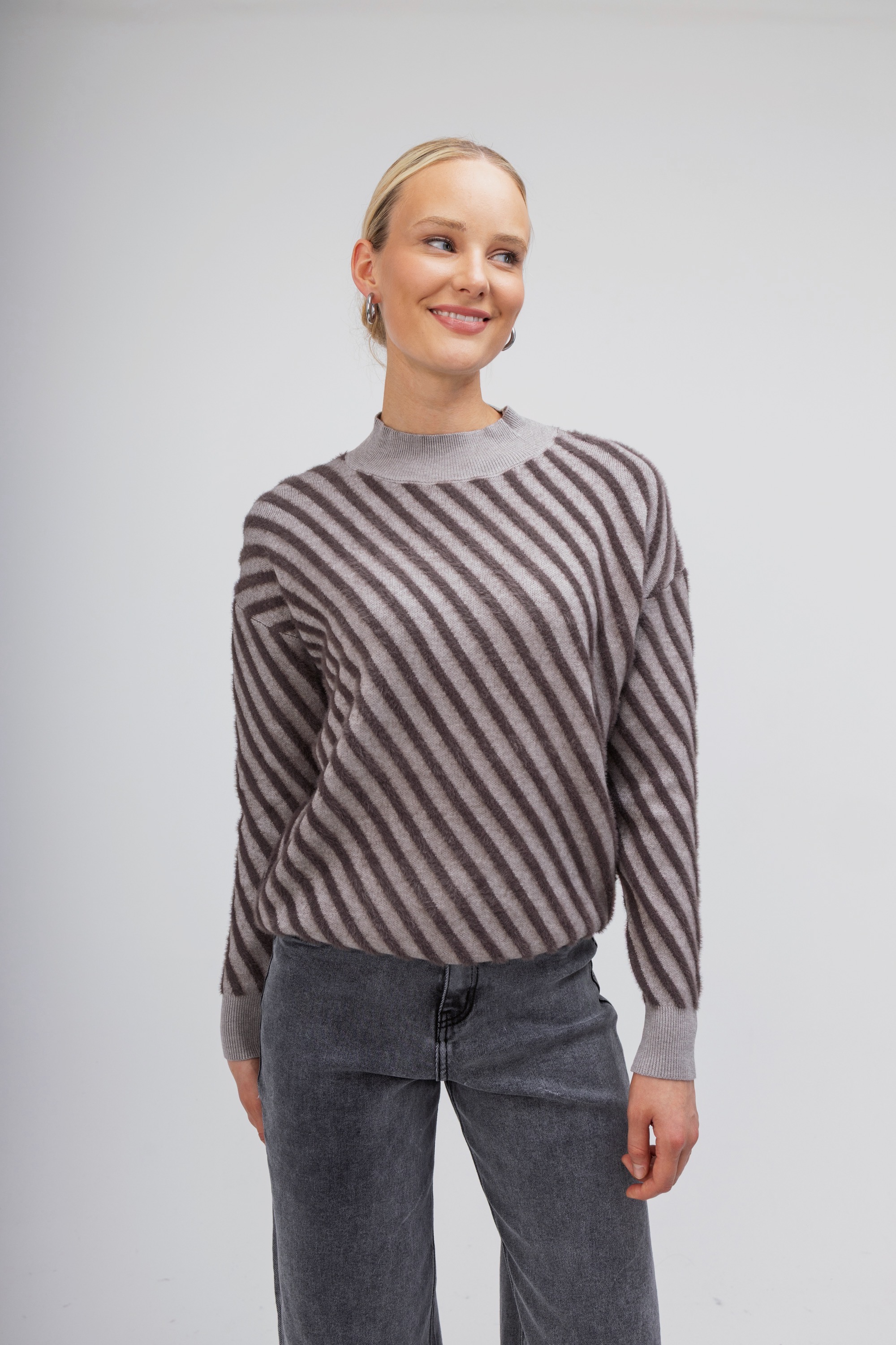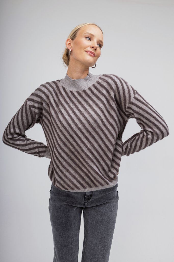 Πουλόβερ- Μπλούζα γκρι με βελουτέ υφή και ιδίατερο ανάγλυφο σχέδιο.