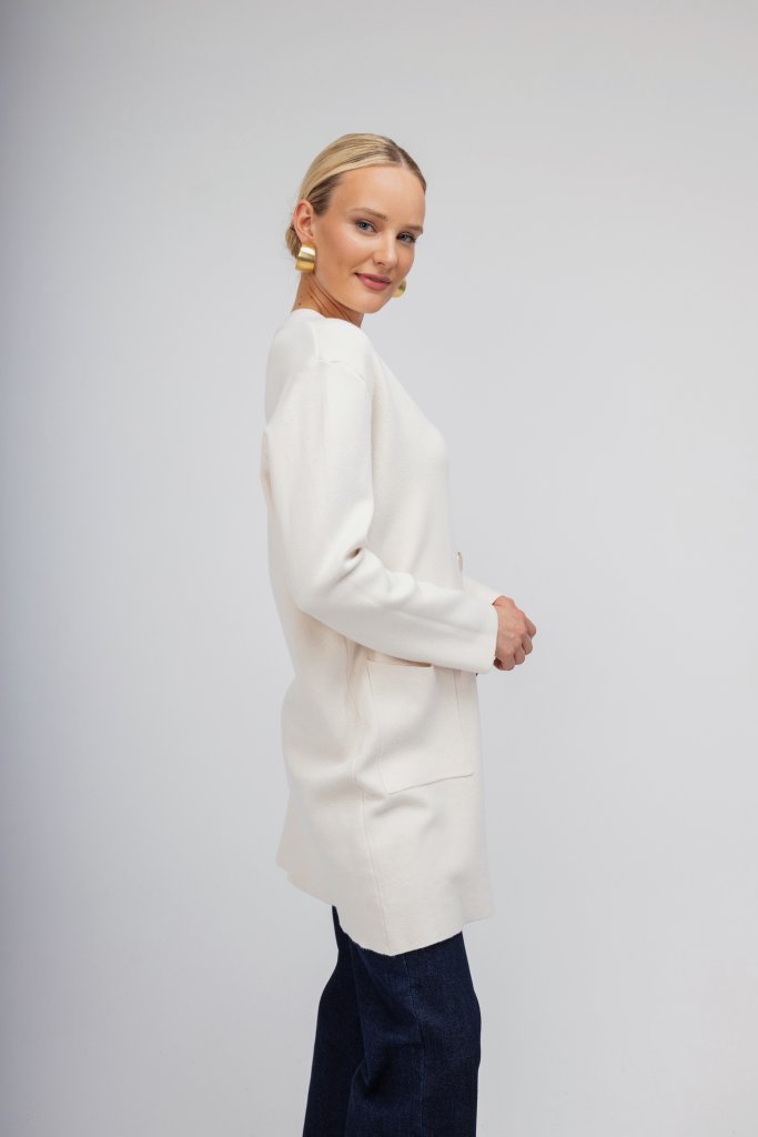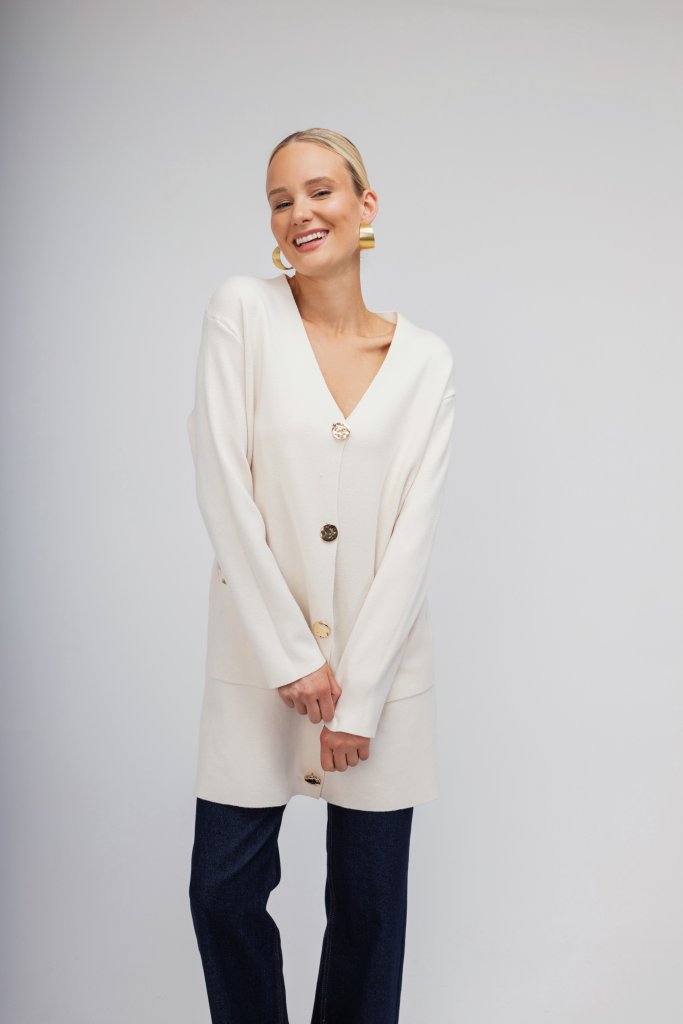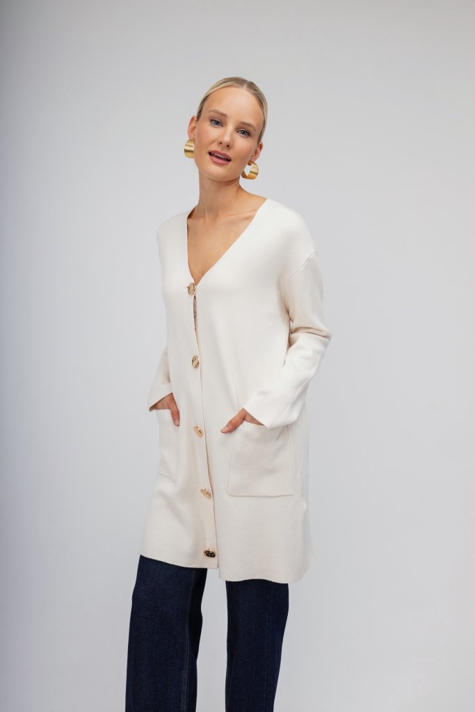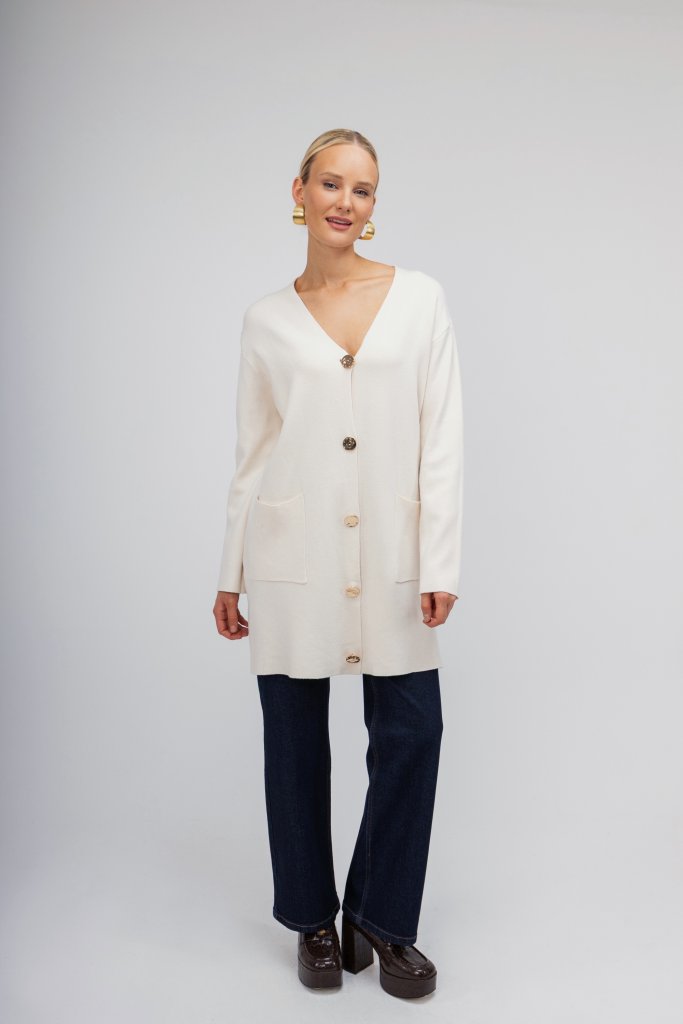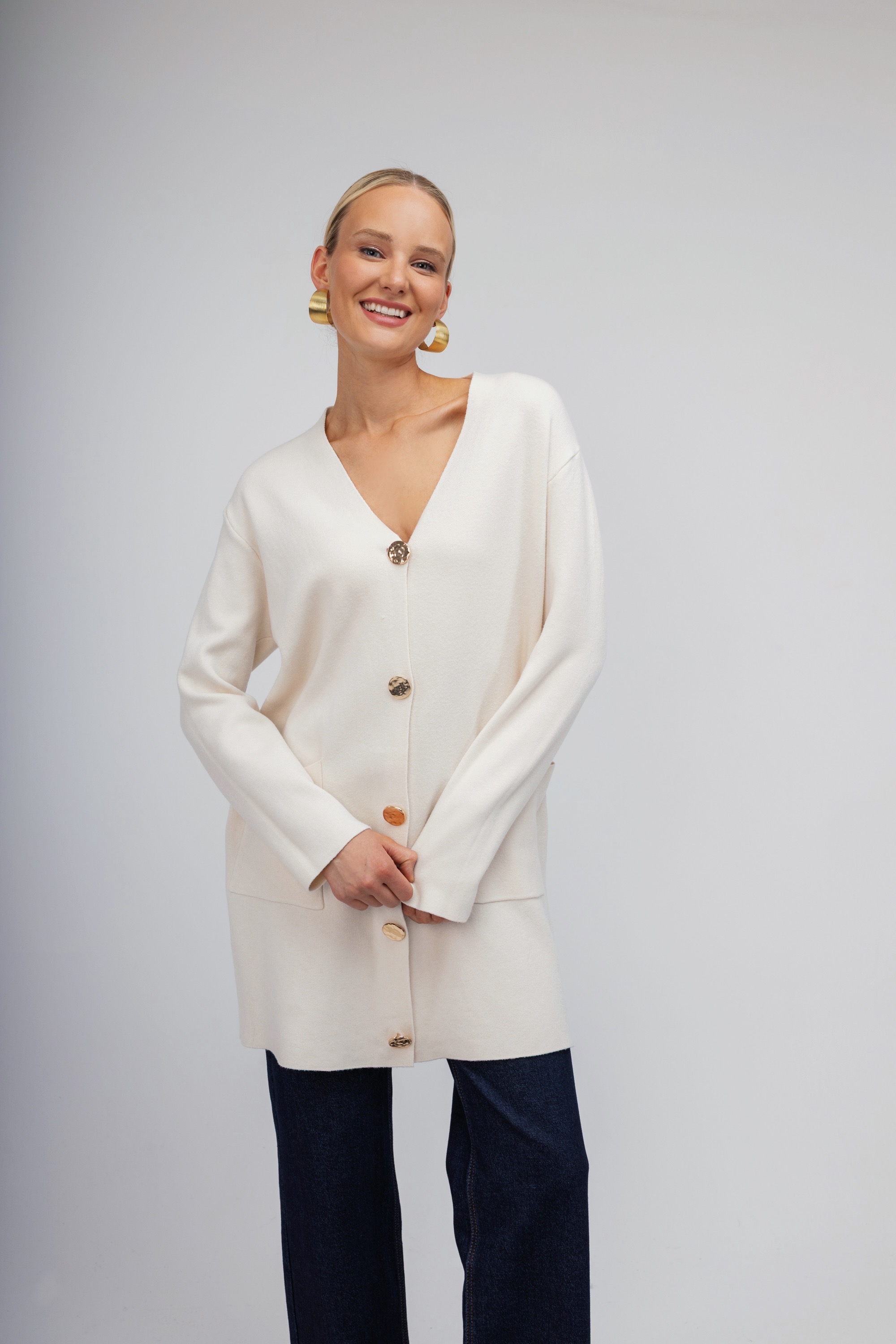 Πουλόβερ-Ζακέτα εκρού με χρυσά κουμπιά