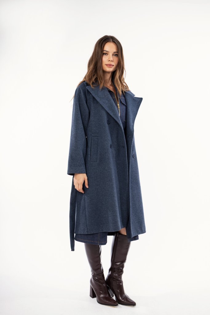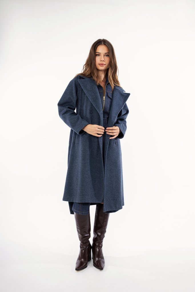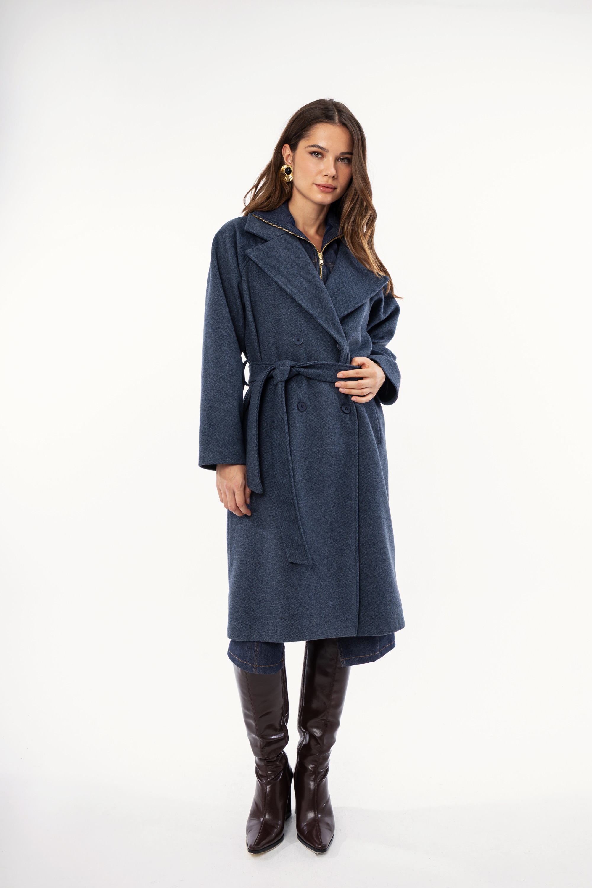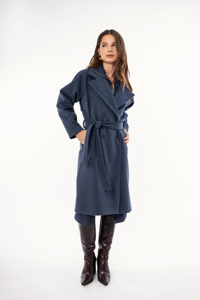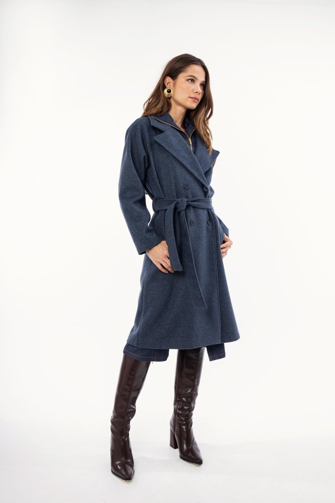 Κλασικό γυναικείο παλτό σε μπλε χρώμα με γιακά. Κλείσιμο με ζώνη και κουμπιά για περισσότερη σταθερότητα. Διαθέτει τσέπες στα πλαϊνά μέρη. Μια χειμερινή επιλογή που θα σας κρατήσει ζεστές και κομψές σε κάθε σας εμφάνιση.