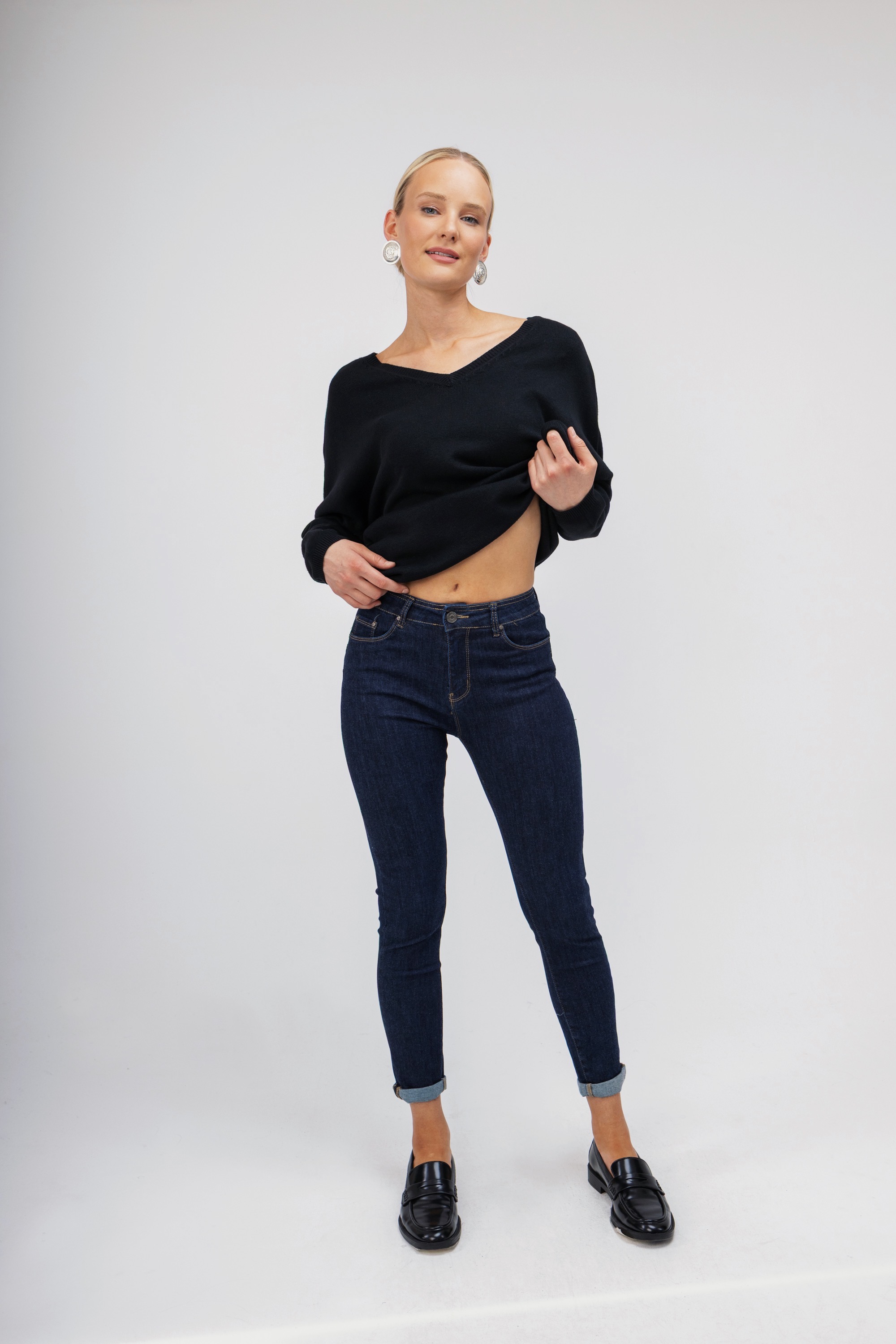 Γυναικείο παντελόνι τζιν σε εφαρμοστή γραμμή με γυριστό παντζάκι. Κλείσιμο με φερμουάρ και κουμπί. Ένα διαχρονικό σχέδιο που δεν πρέπει να λείπει από τη συλλογή σας για κάθε ηλικία και κάθε εποχή του χρόνου.