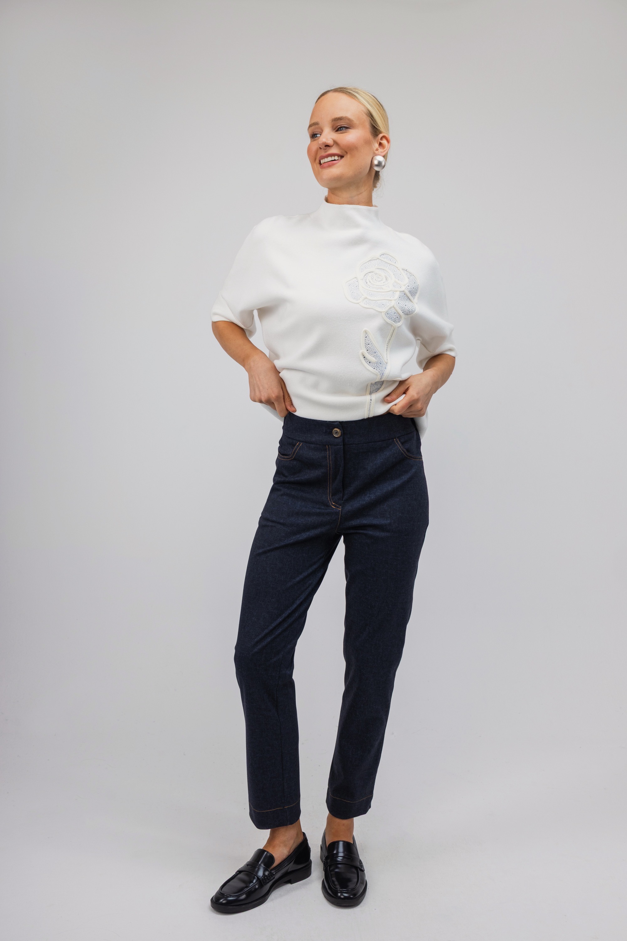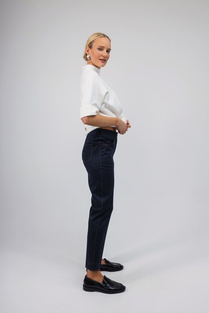 Τζιν Παντελόνι σκρού μπλε με κουμπί και φερμουάρ. Διαθέτει εξωτερικές ραφές και κλασικό, διαχρονικό σχεδιασμό. Ένα σχέδιο που θα γίνει το απαραίτητο κομμάτι του καθημερινού σας look.