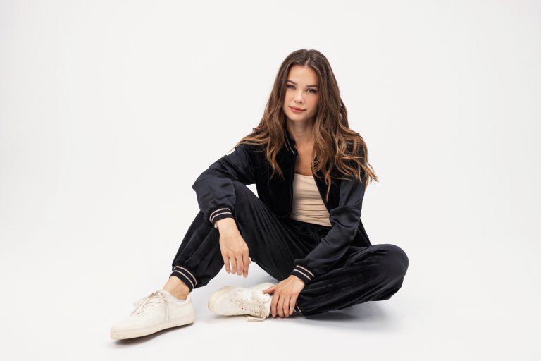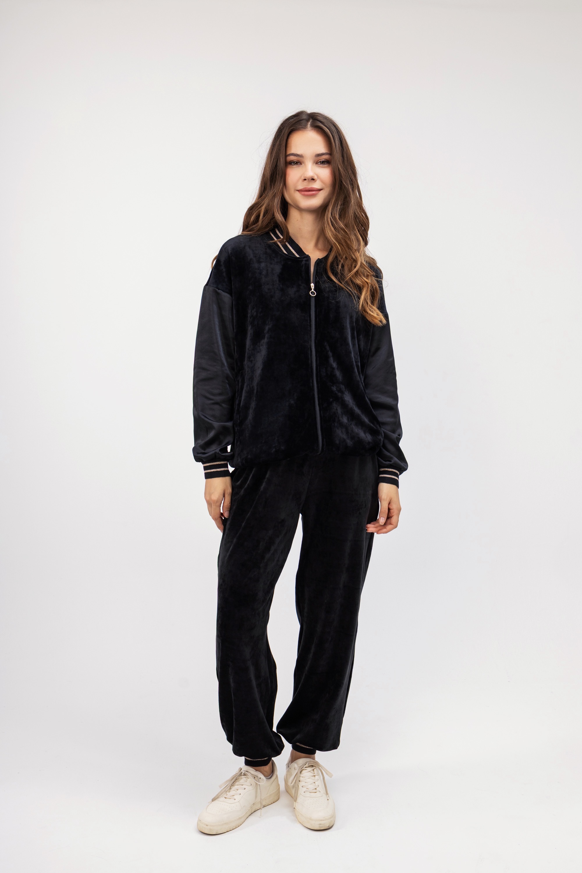 Ζακέτα-Φούτερ μαύρη βελουτέ με φερμουάρ