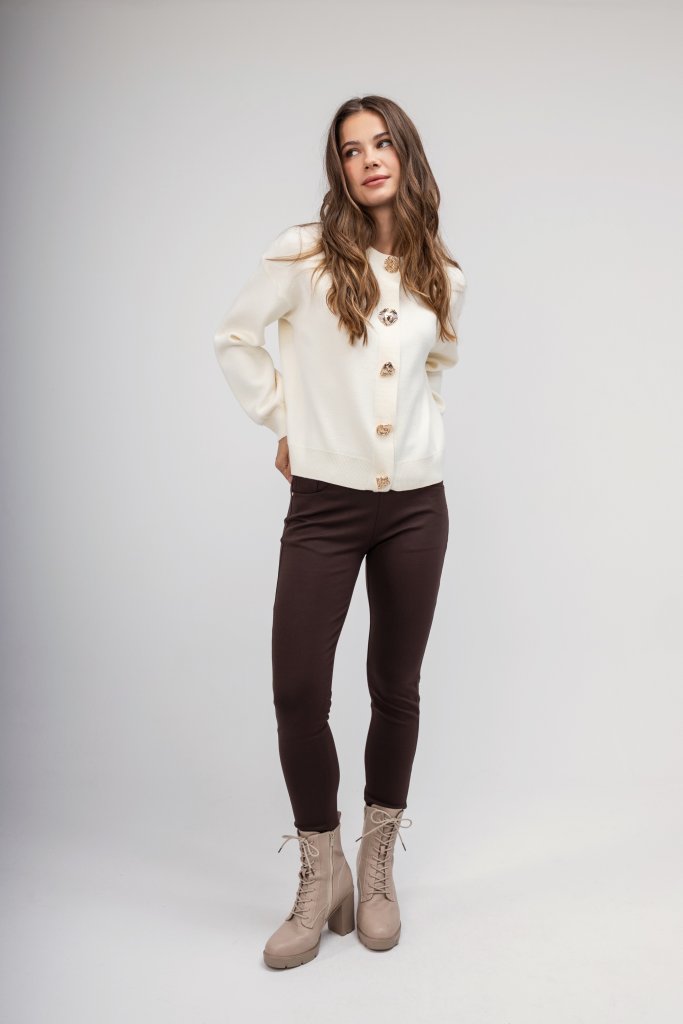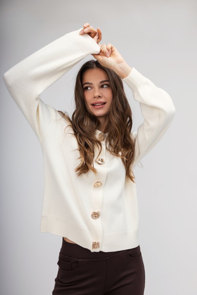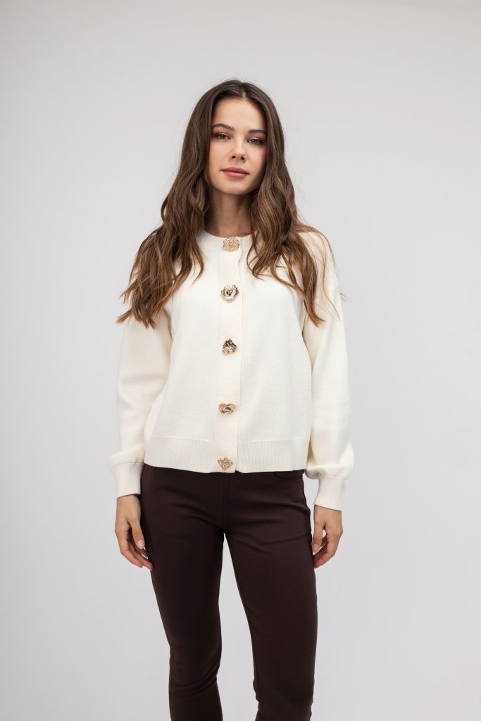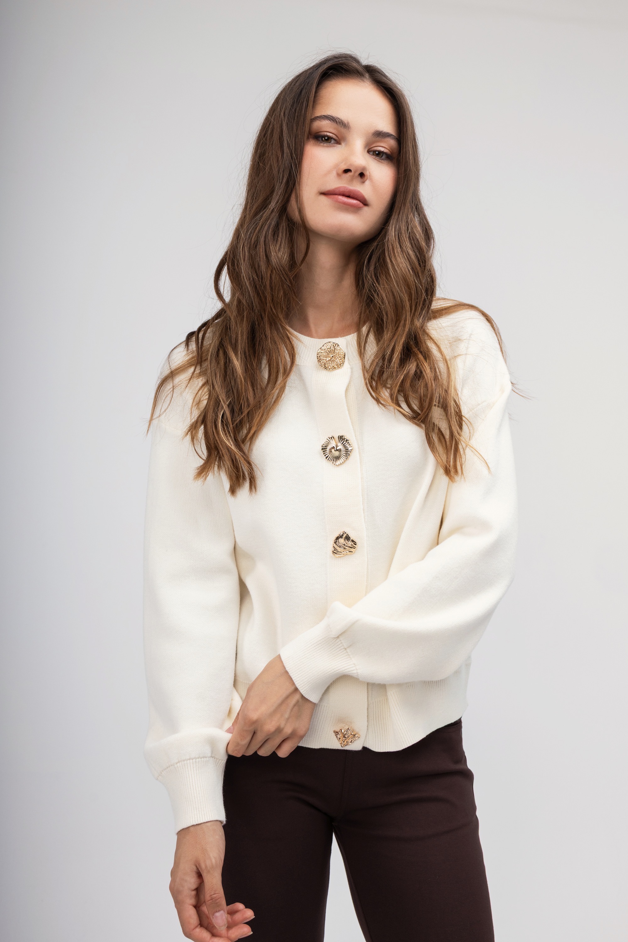 Ζακέτα-Πουλόβερ εκρού με χρυσά εντυπωσιακά κουμπιά σαν κοχύλια