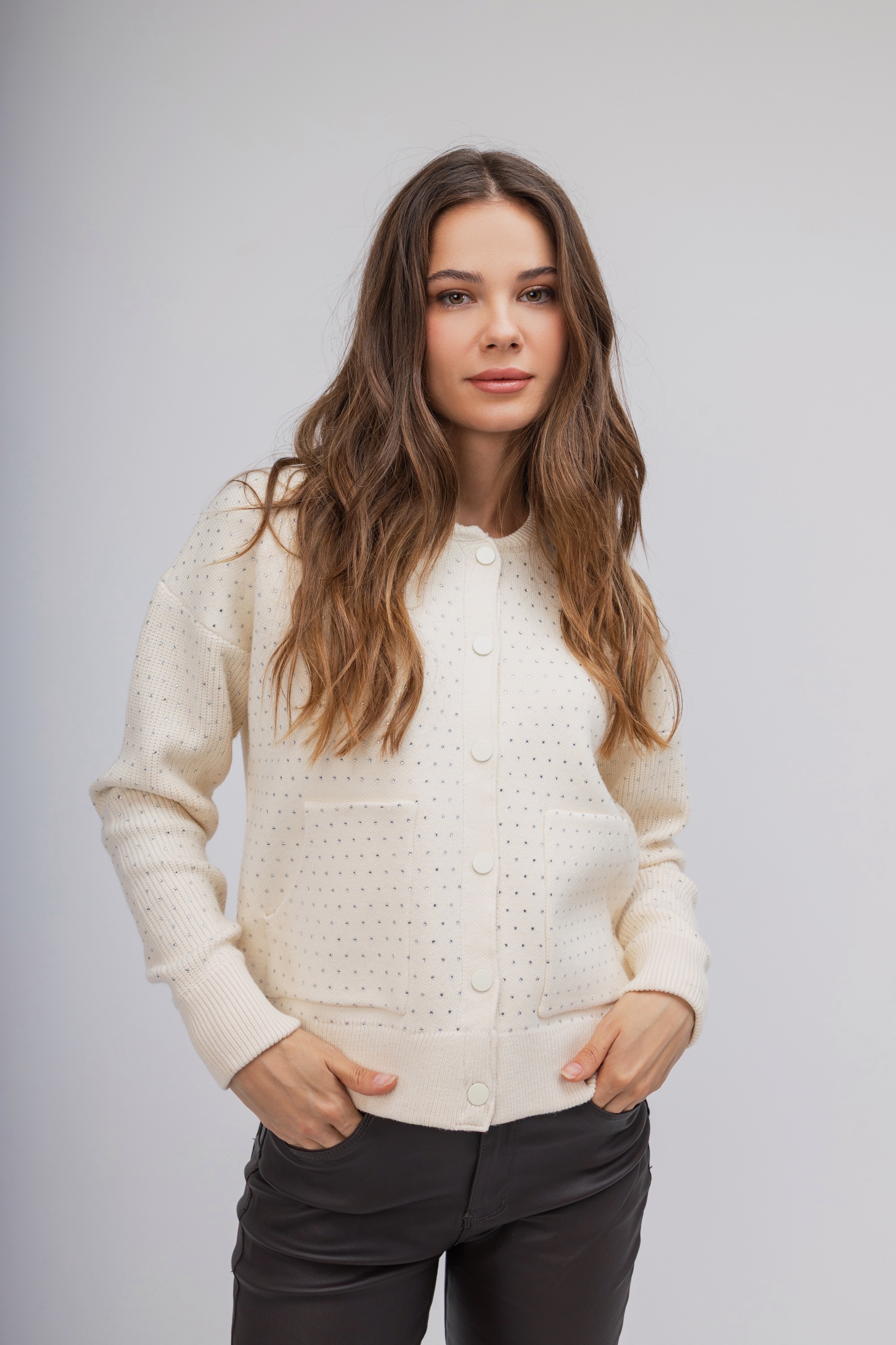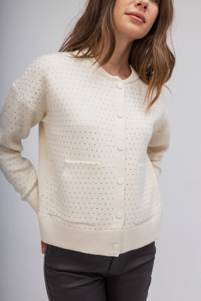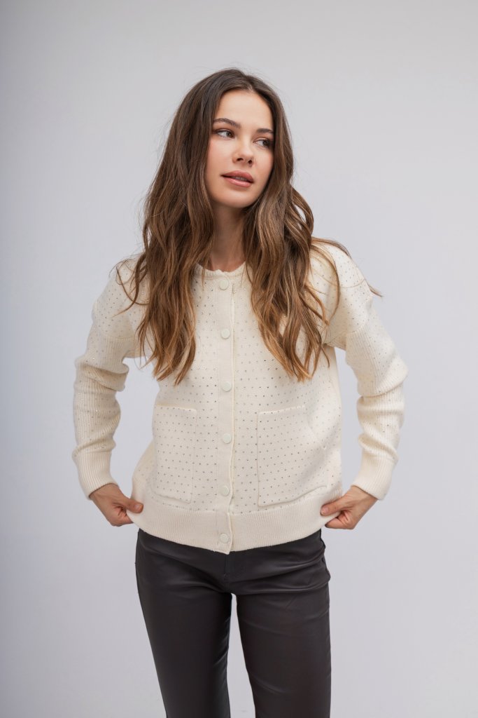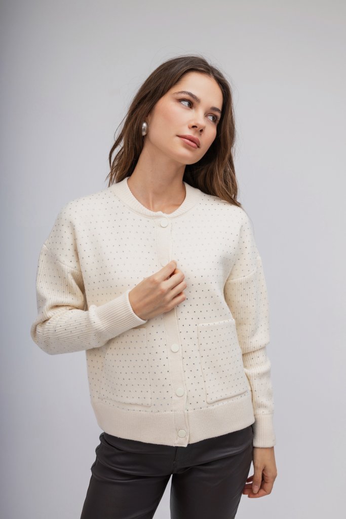 Ζακέτα-Πουλόβερ εκρού με strass