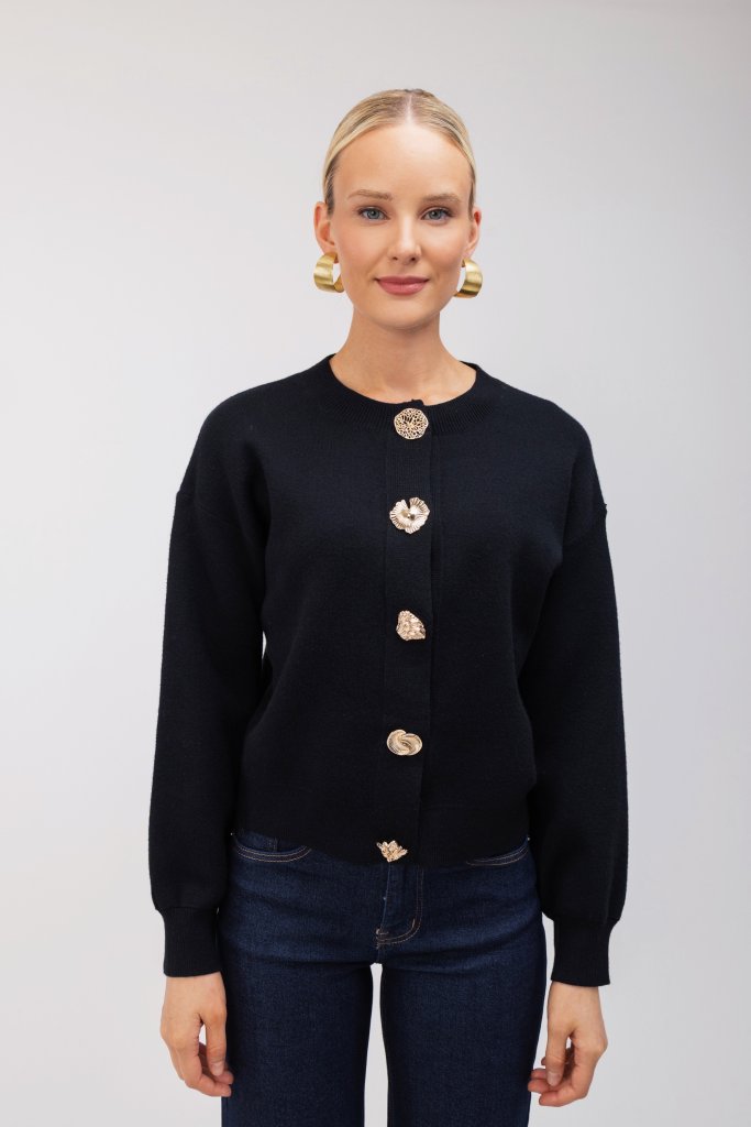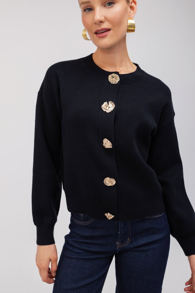 Ζακέτα-Πουλόβερ μαύρη με χρυσά εντυπωσιακά κουμπιά σαν κοχύλια